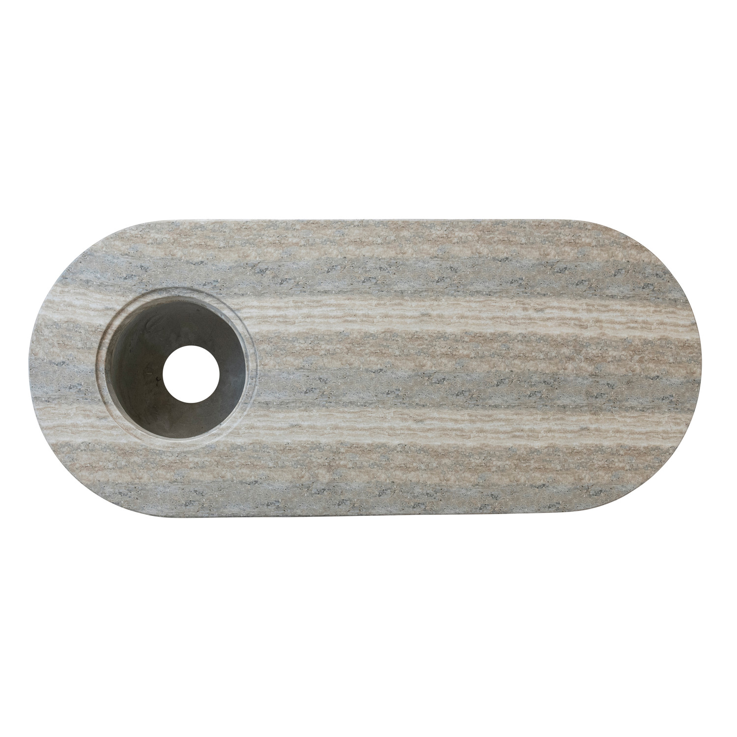 Catalog Name: 55"L x 23-1/2"W x 12"H Lightweight Eco Stone Indoor/Outdoor Table w/ Planter & Drainage Hole, Travertine Finish, Truck Ship (Holds 10" Pot)
