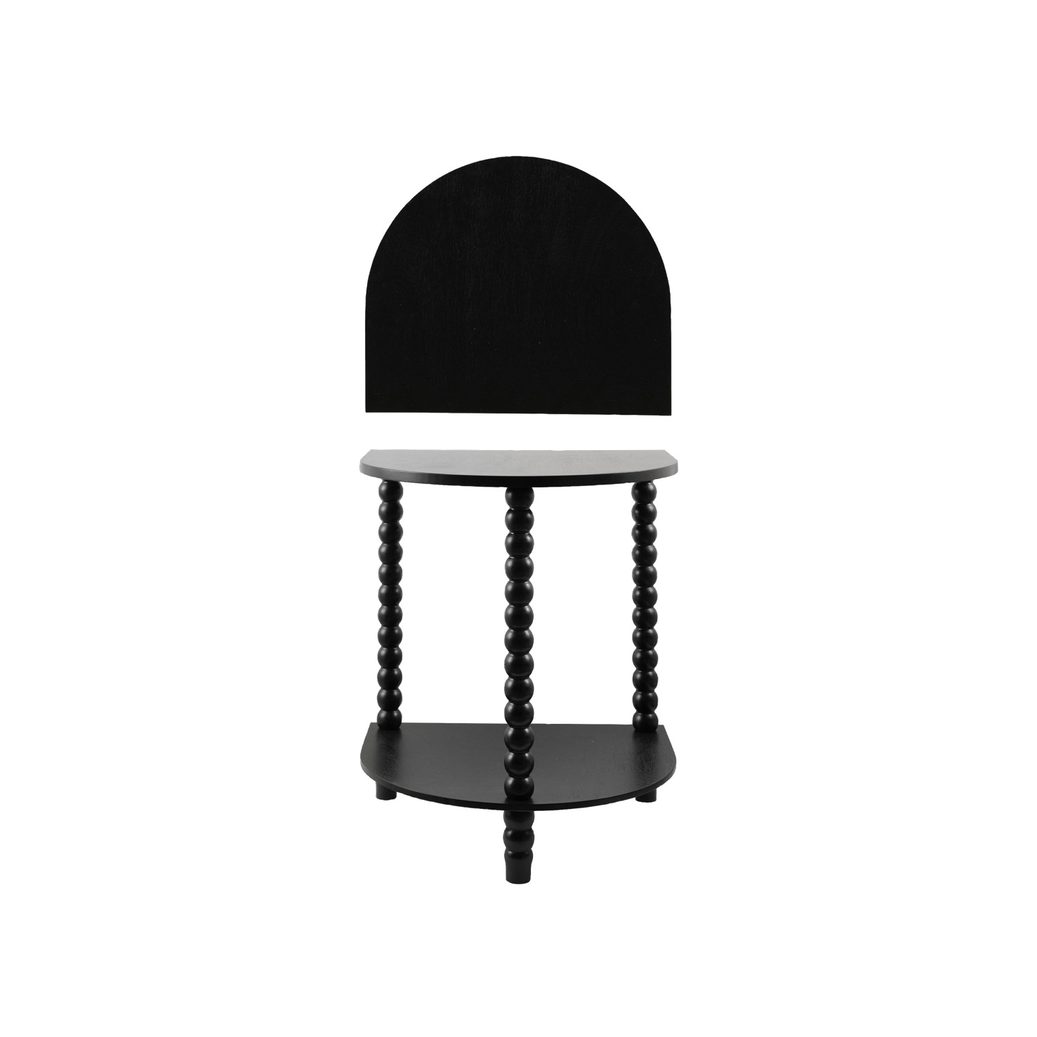 Catalog Name: 17-1/4"W x 14-1/2"D x 22"H MDF & Wood Demilune Table w/ Turned Legs & Shelf, Black, KD