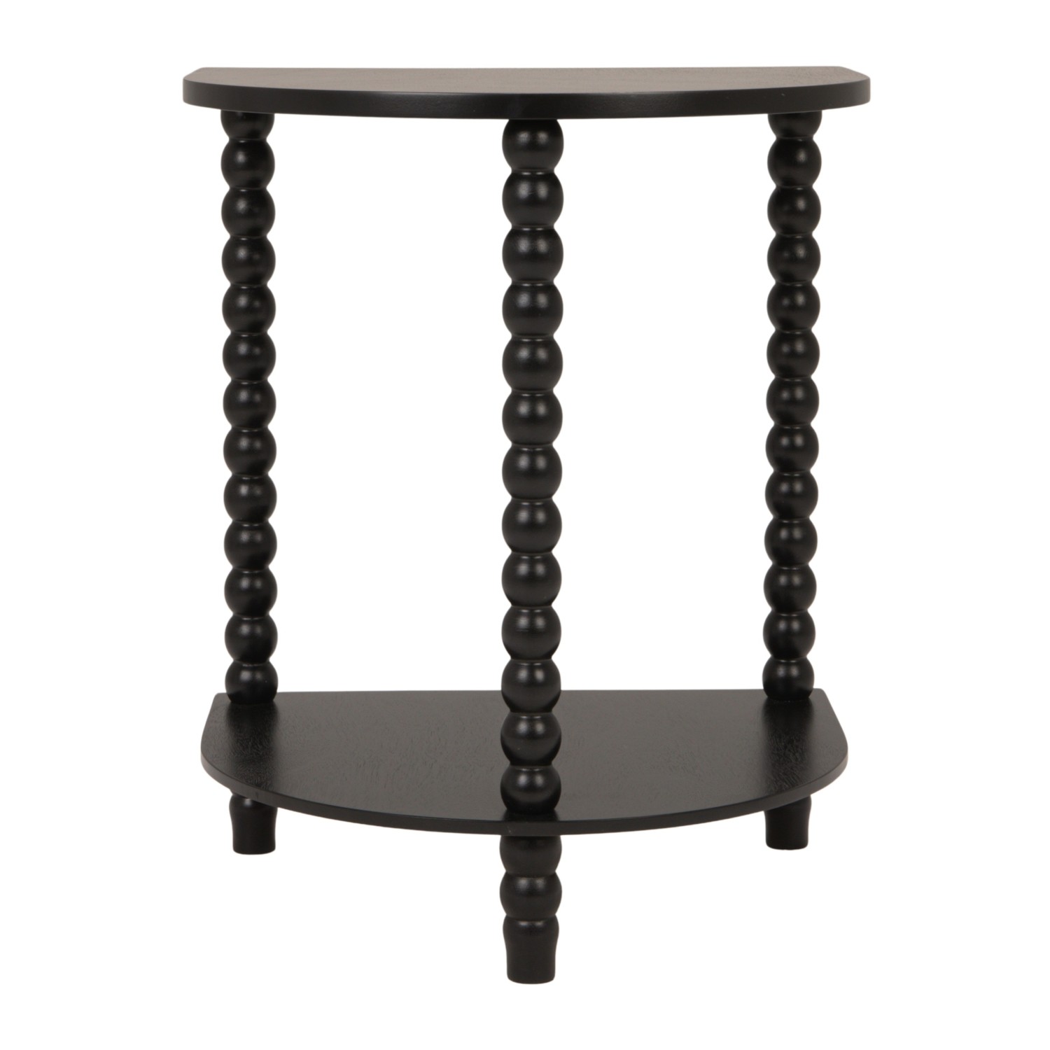 MDF & Wood Demilune Table with Turned Legs & Shelf, Black, KD