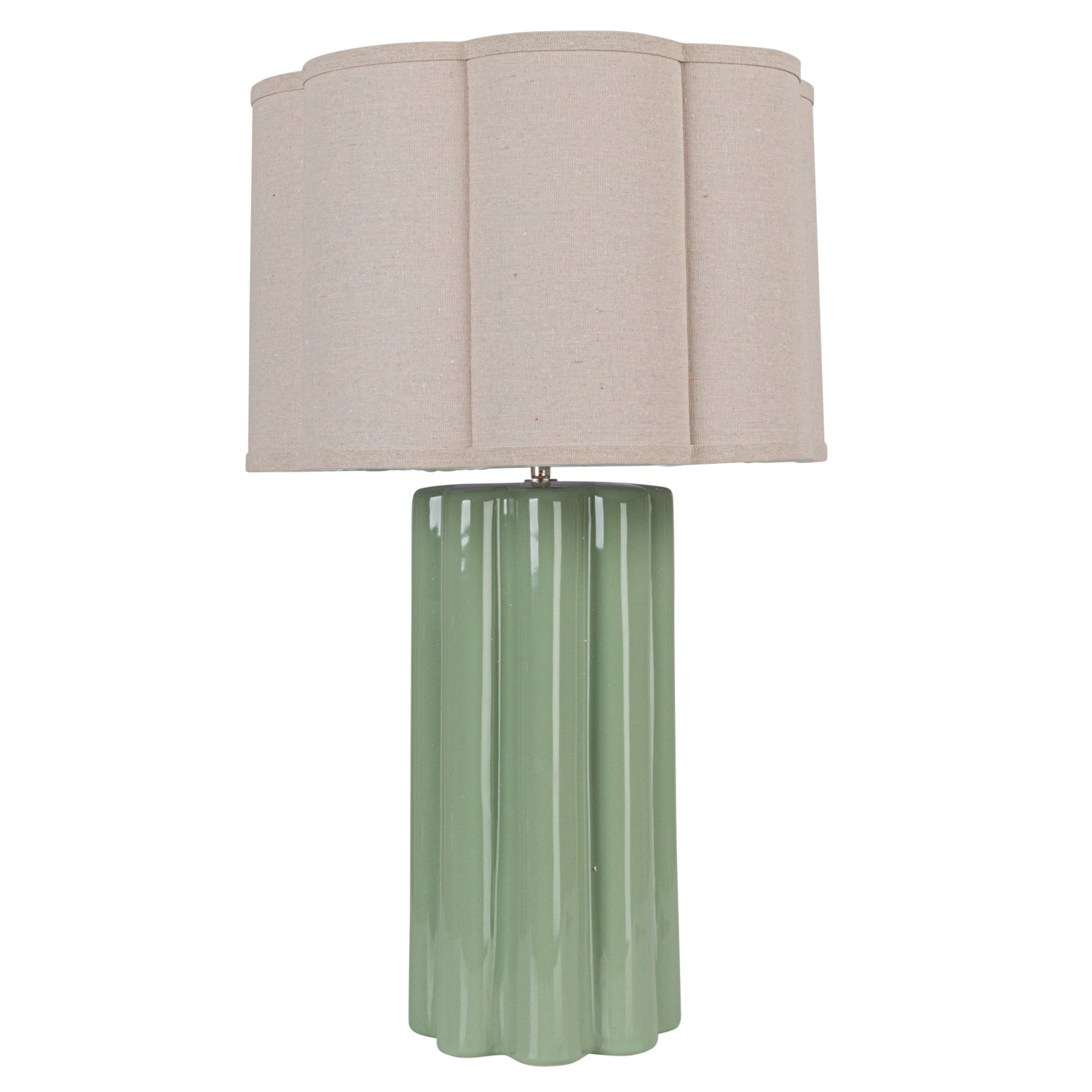 Catalog Name: 16-1/2" Round x 27"H Stoneware Fluted Table Lamp w/ Linen Scalloped Shade & Swivel Neck, Mint Color, Truck Ship