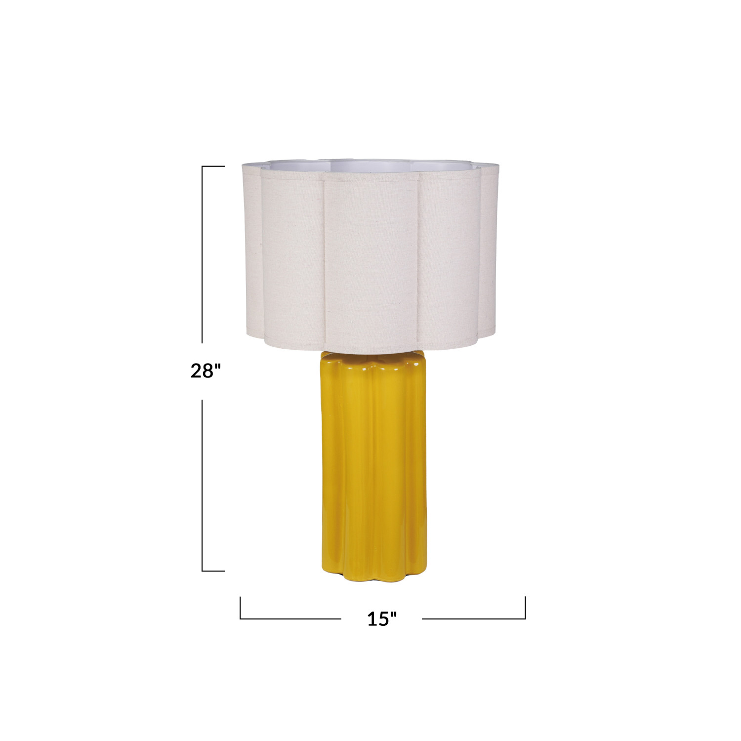 Catalog Name: 15" Round x 28"H Stoneware Fluted Table Lamp w/ Scalloped Linen Shade & Swivel Neck, Mustard Color, Truck Ship