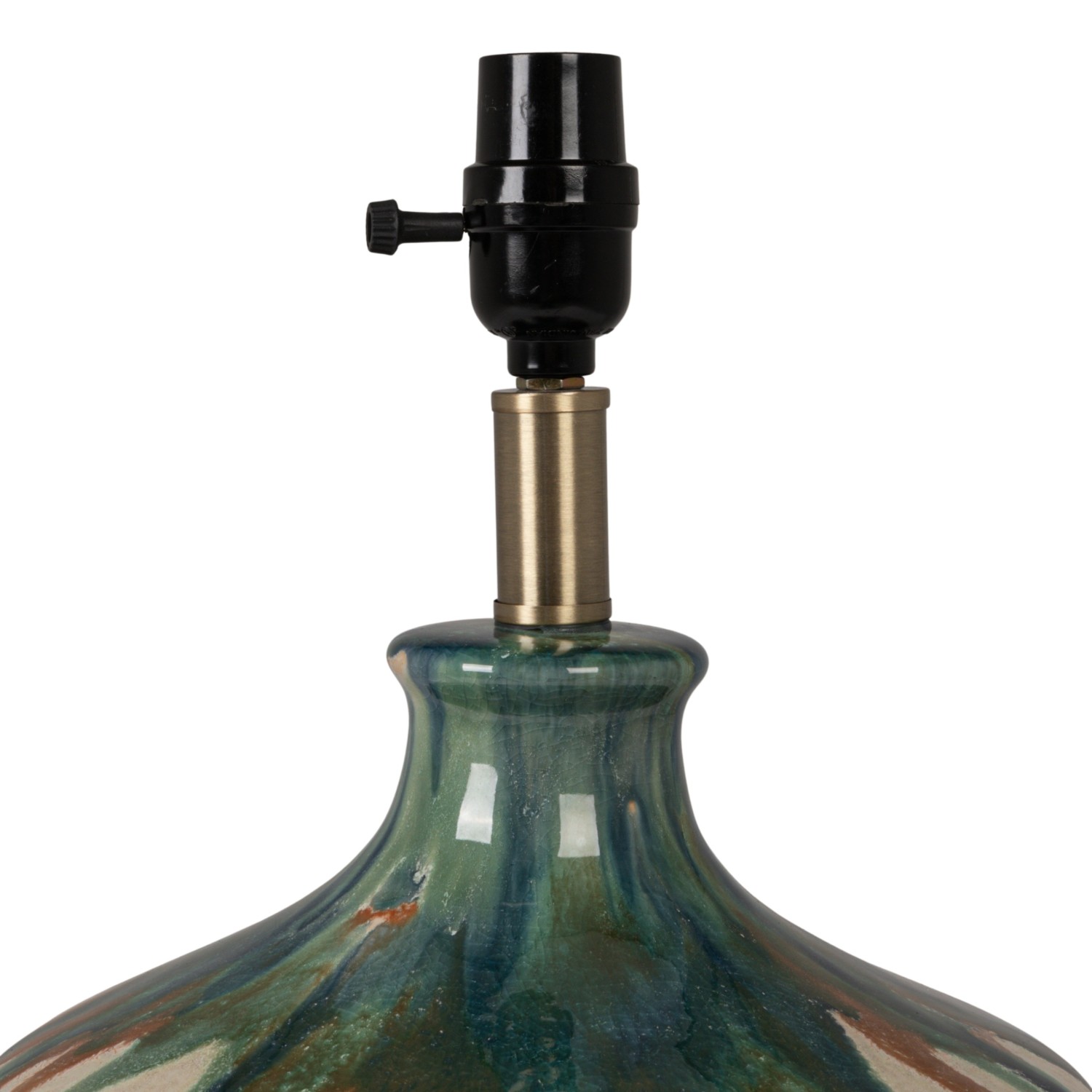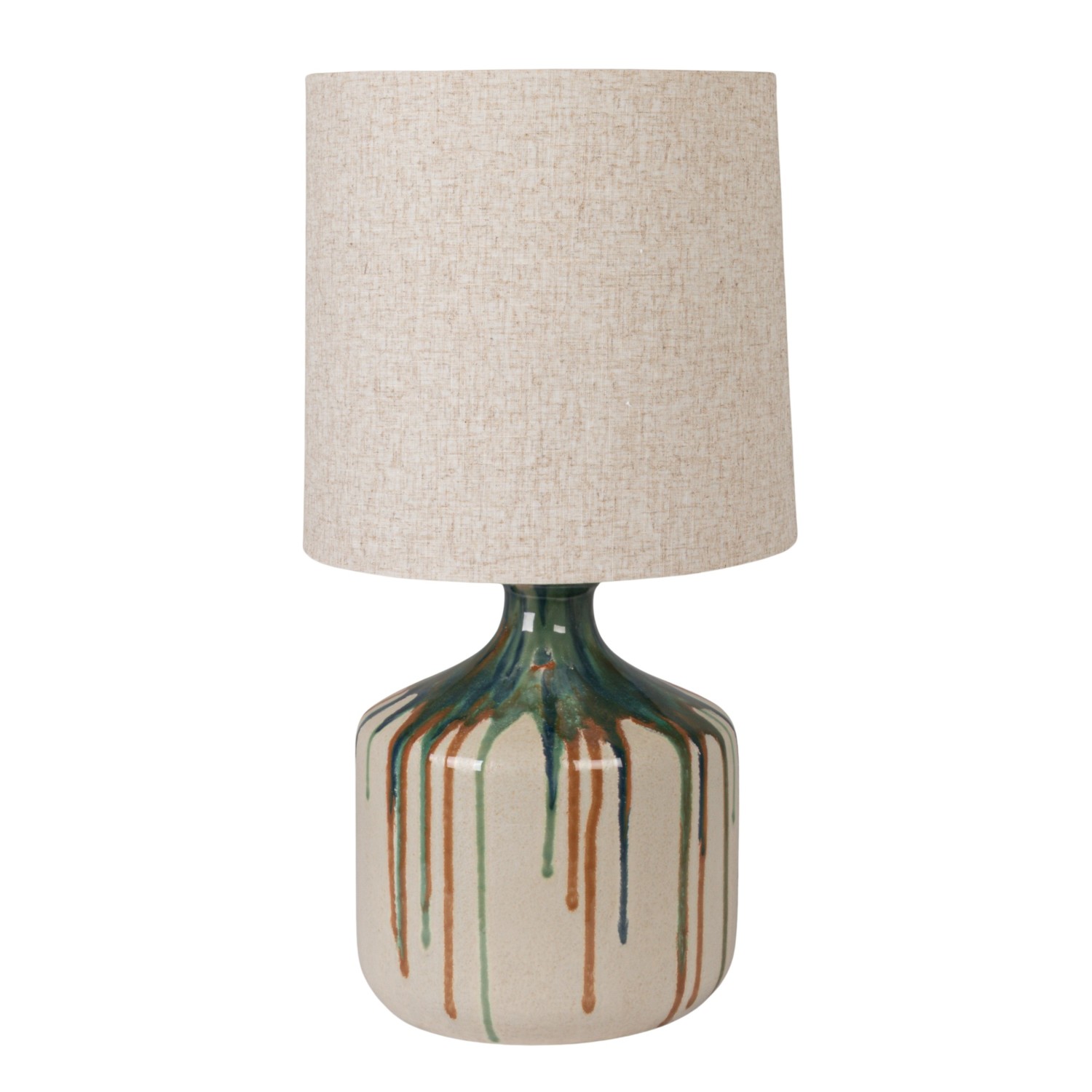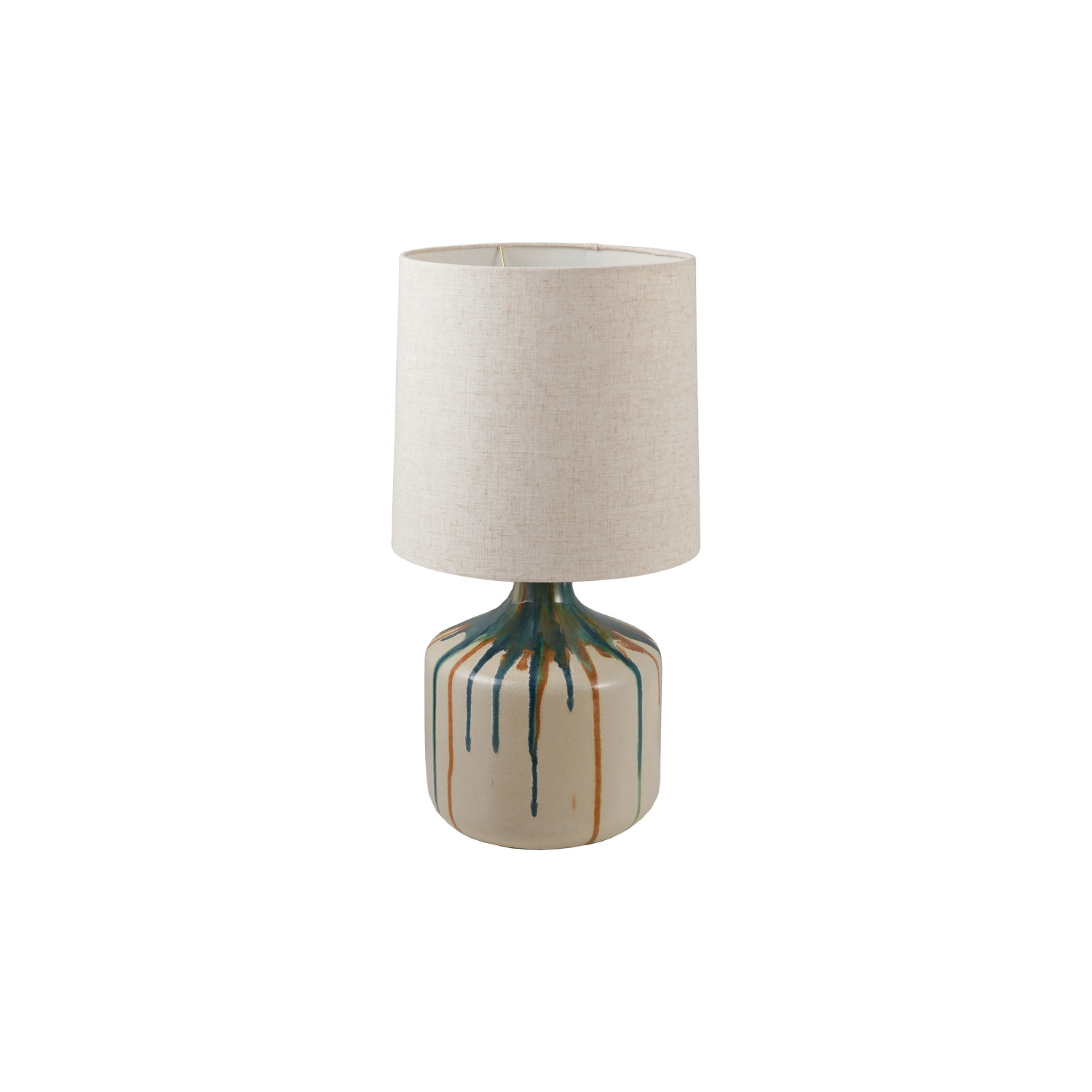 Catalog Name: 12" Round x 23-1/2"H Stoneware Table Lamp w/ Linen Shade & Inline Switch, Reactive Glaze, Multi Color (Each One Will Vary)