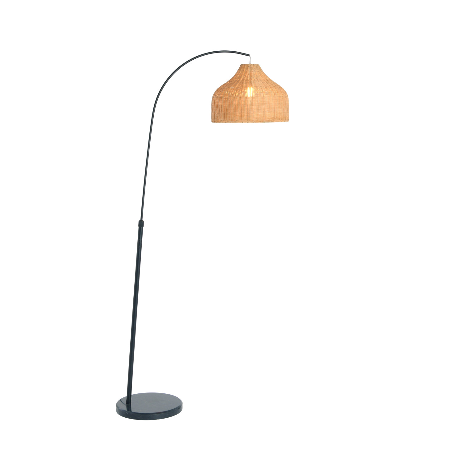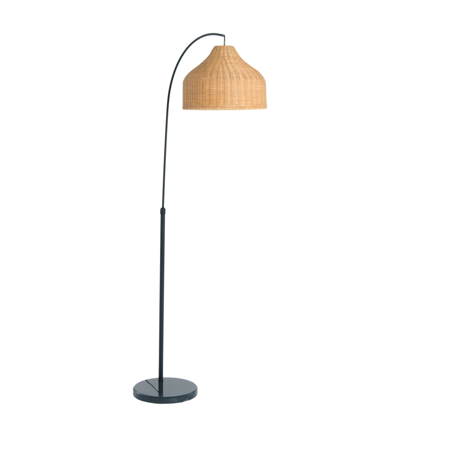 Modern Boho Floor Lamp with Marble Base and Rattan Shade