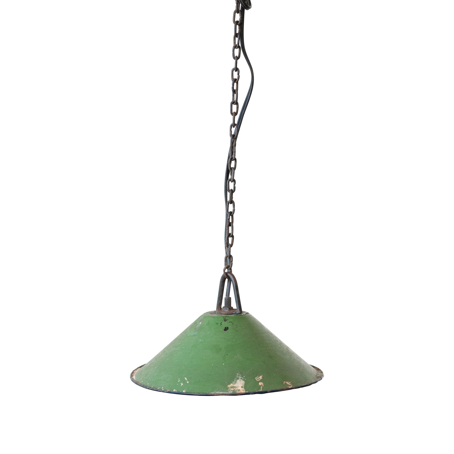 Catalog Name: 10" Round x 6"H Found Metal Pendant Lamp, 6' Chain & 6' Cord, Distressed Finish, Green (Hardwire Only) (Each One Will Vary)