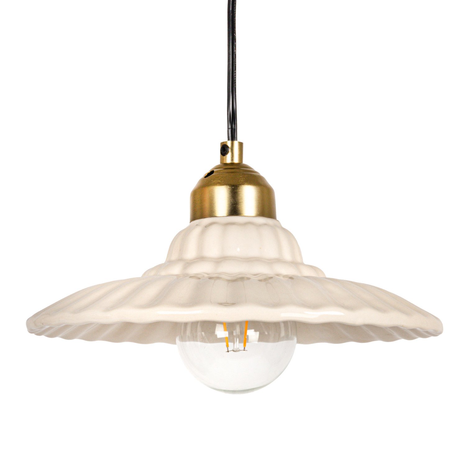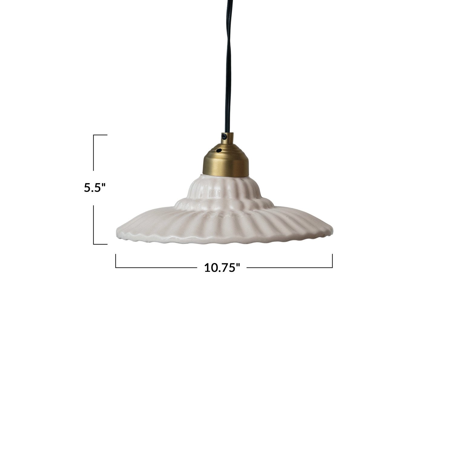 Catalog Name: 10-3/4" Round x 5-1/2"H Stoneware & Metal Pleated Pendant Lamp, 6' Cord, Antique Brass Finish & Cream Color (Hardwire Only)