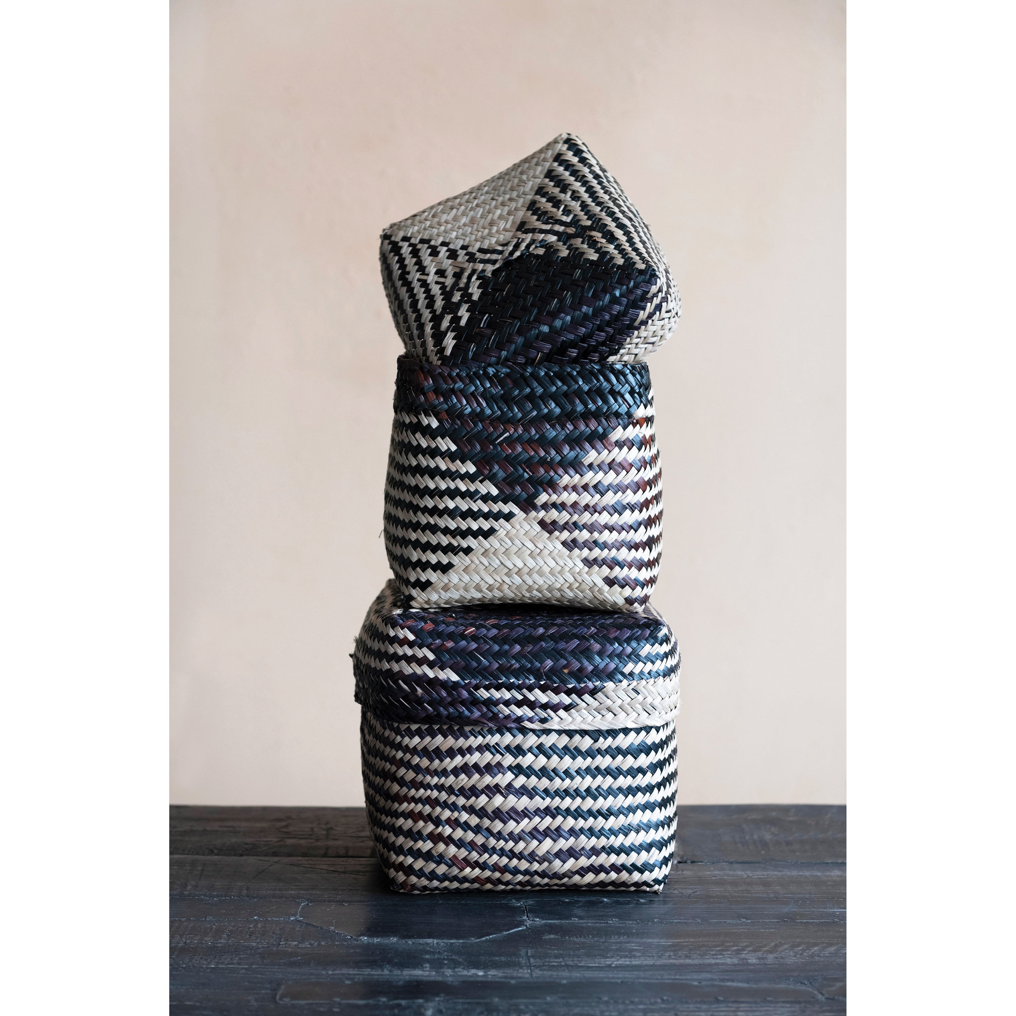 Catalog Name: 9" Square x 9"H & 8" Square x 8"H Hand-Woven Seagrass Boxes, Natural & Black, Set of 2