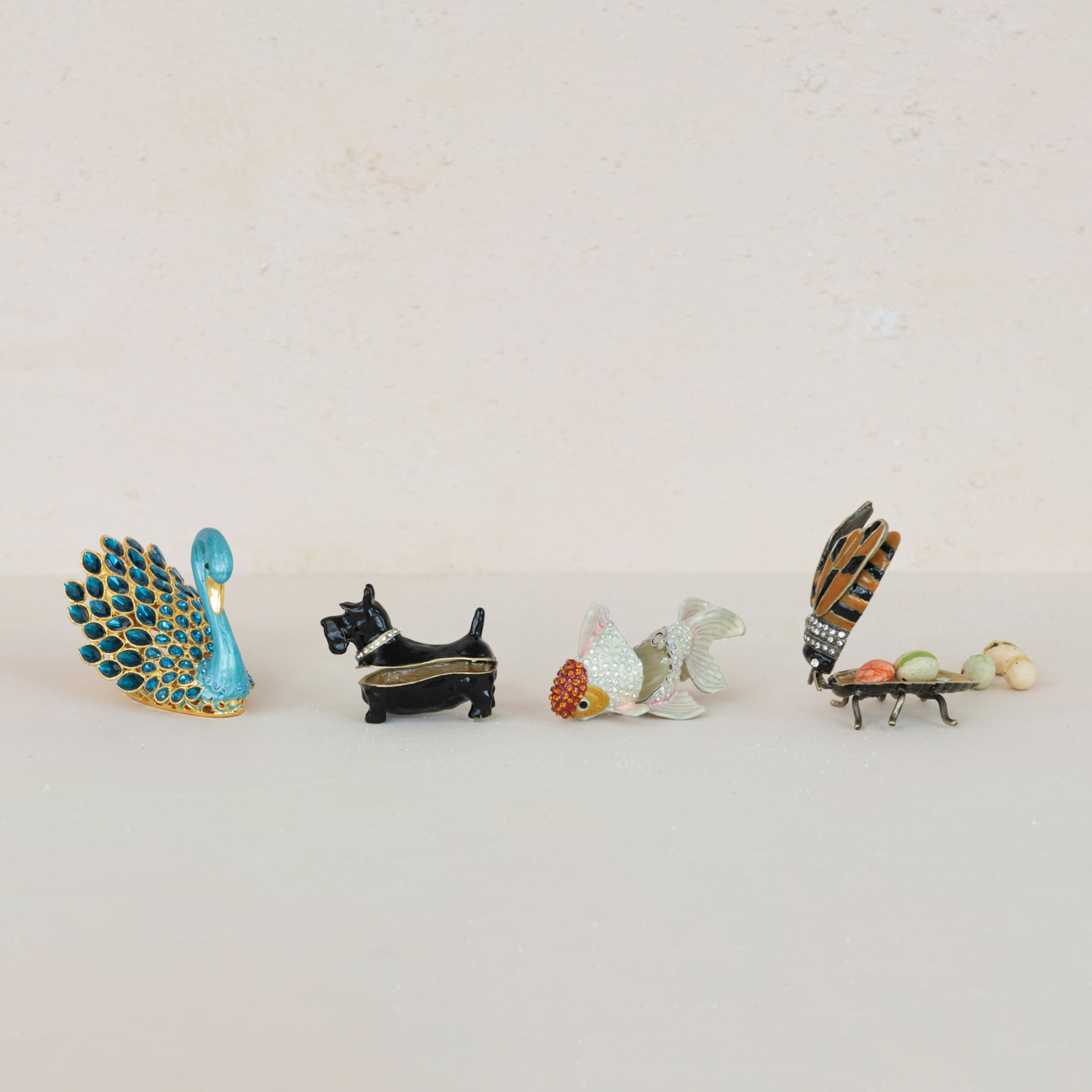 Enameled Metal Goldfish Shaped Trinket Box w/ Jewels, Orange Color & White
