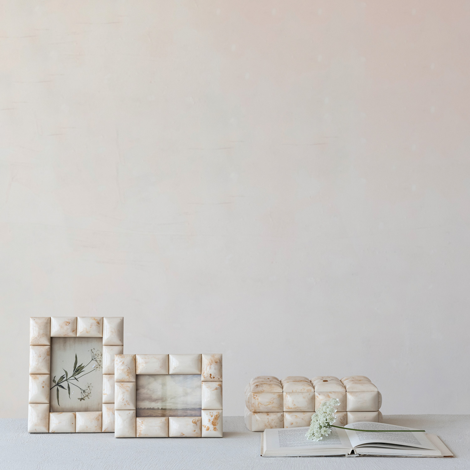 Catalog Name: 12"L x 7"W x 4"H Marbled Resin Tile & MDF Box, Ivory Color (Each One Will Vary)
