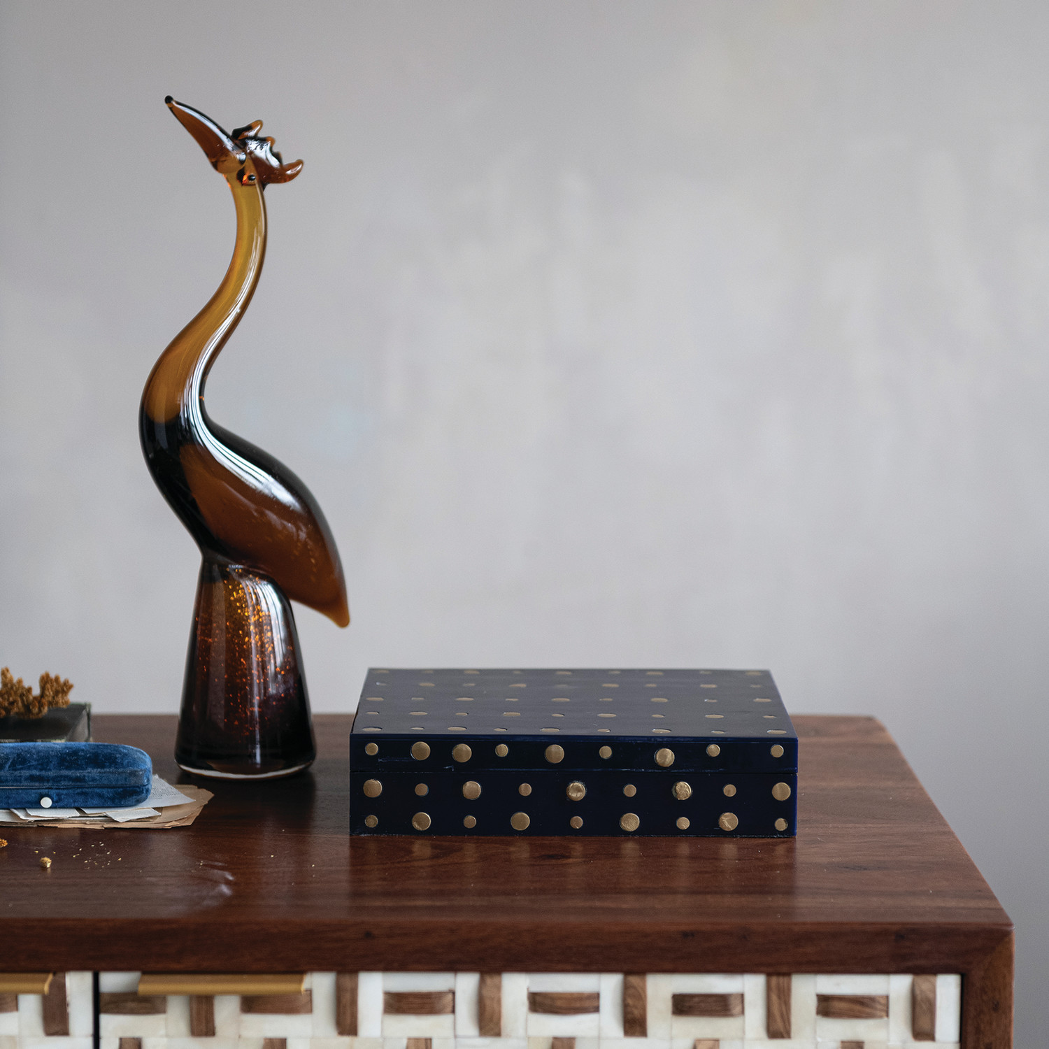 Resin, Brass & MDF Studded Box, Navy Color (Each One Will Vary)