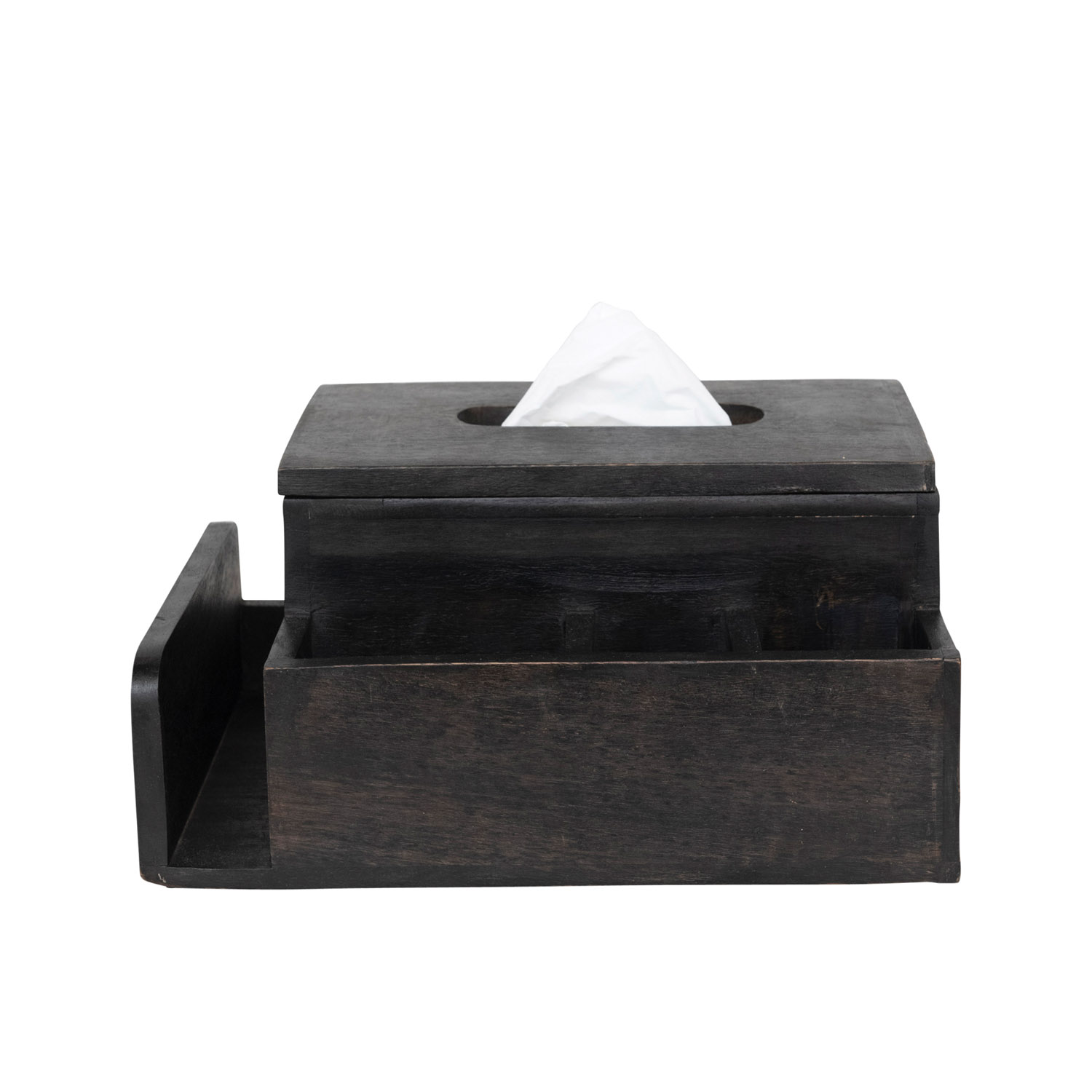 Black mango wood tissue box holder with 4 compartments. Add a touch of style to a powder room or home office with this artfully crafted tissue box holder. Made from 100% mango wood. Curate a space that reflects your unique sense of style with intentionally designed home décor.