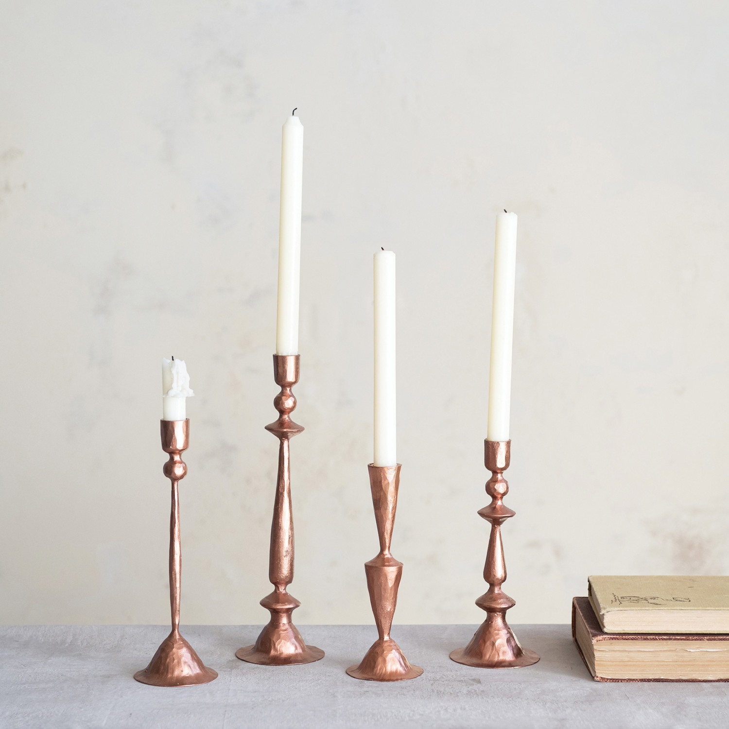 Hand-Forged Cast Iron Taper Holder, Copper Finish