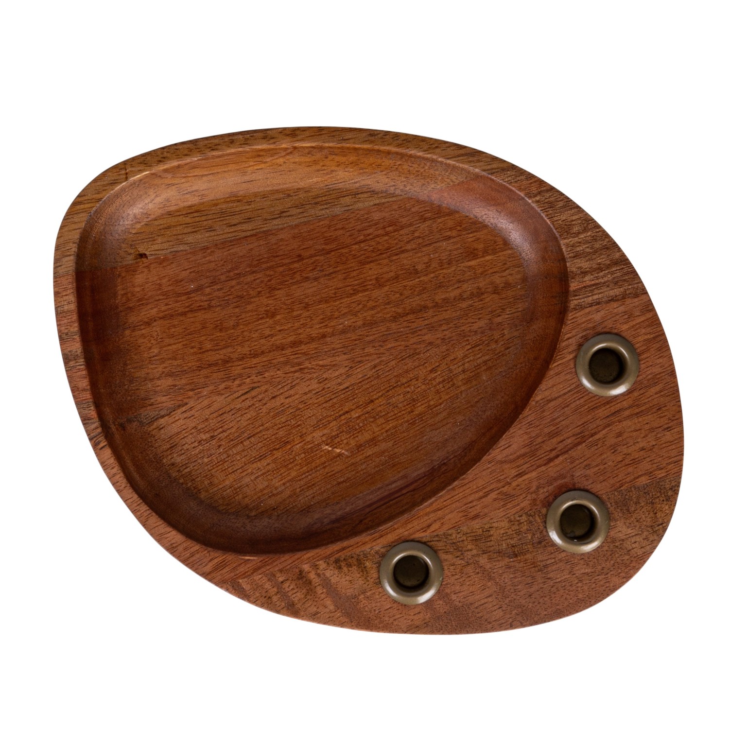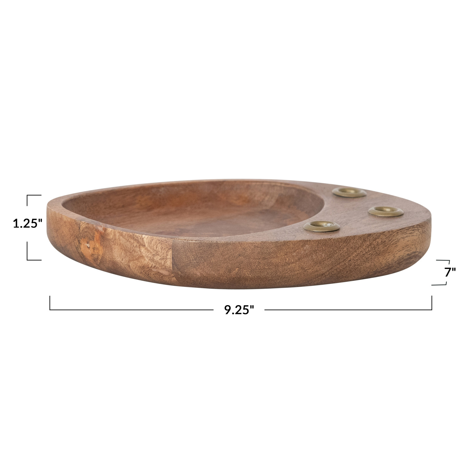 Catalog Name: 9-1/4"L x 7"W x 1-1/4"H Mango Wood & Metal Taper Holder w/ Tray, Gold Finish & Natural (Holds (3) 1/2" Tapers)