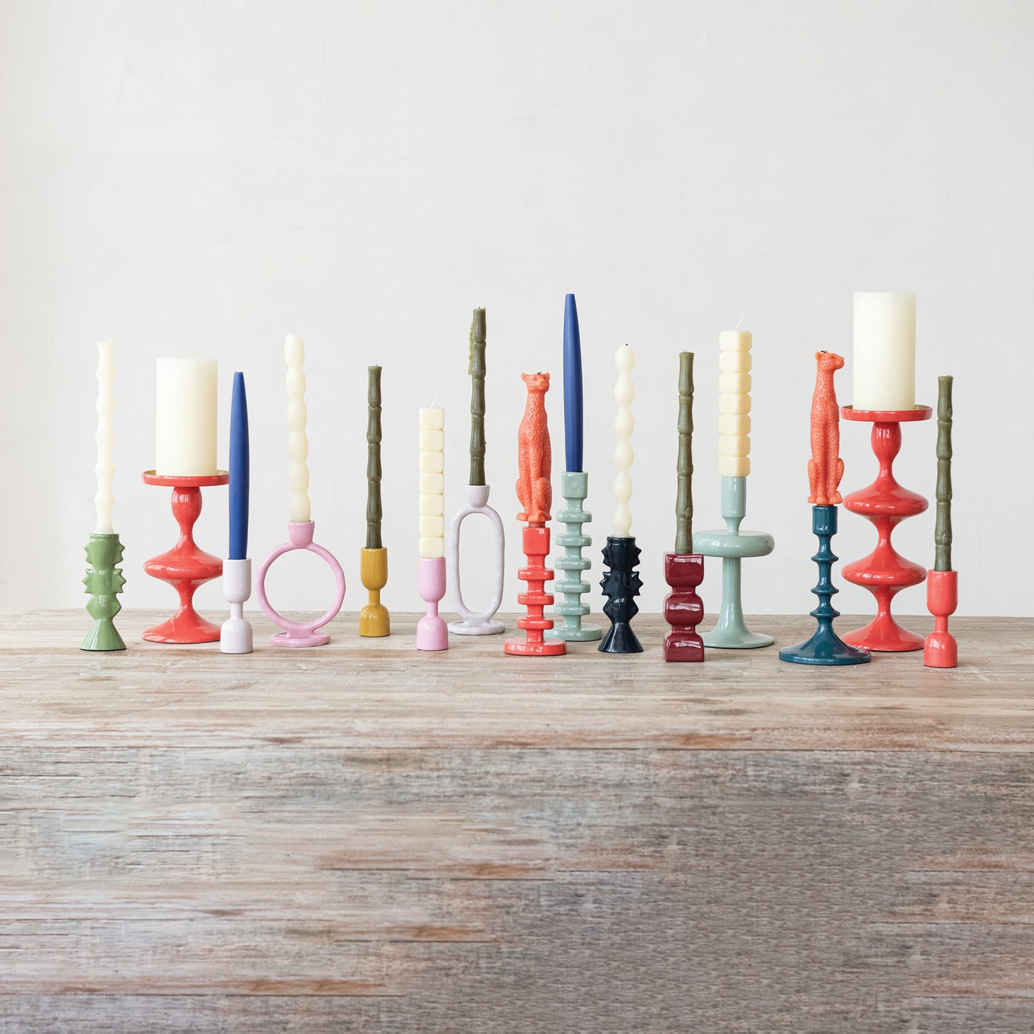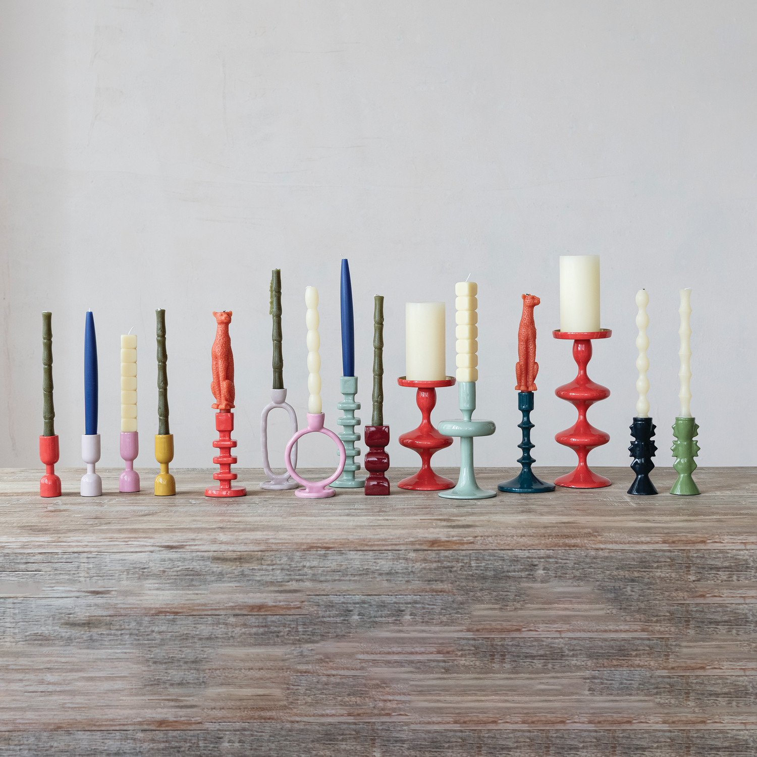 Enameled Aluminum Circle Taper Holder, Pink