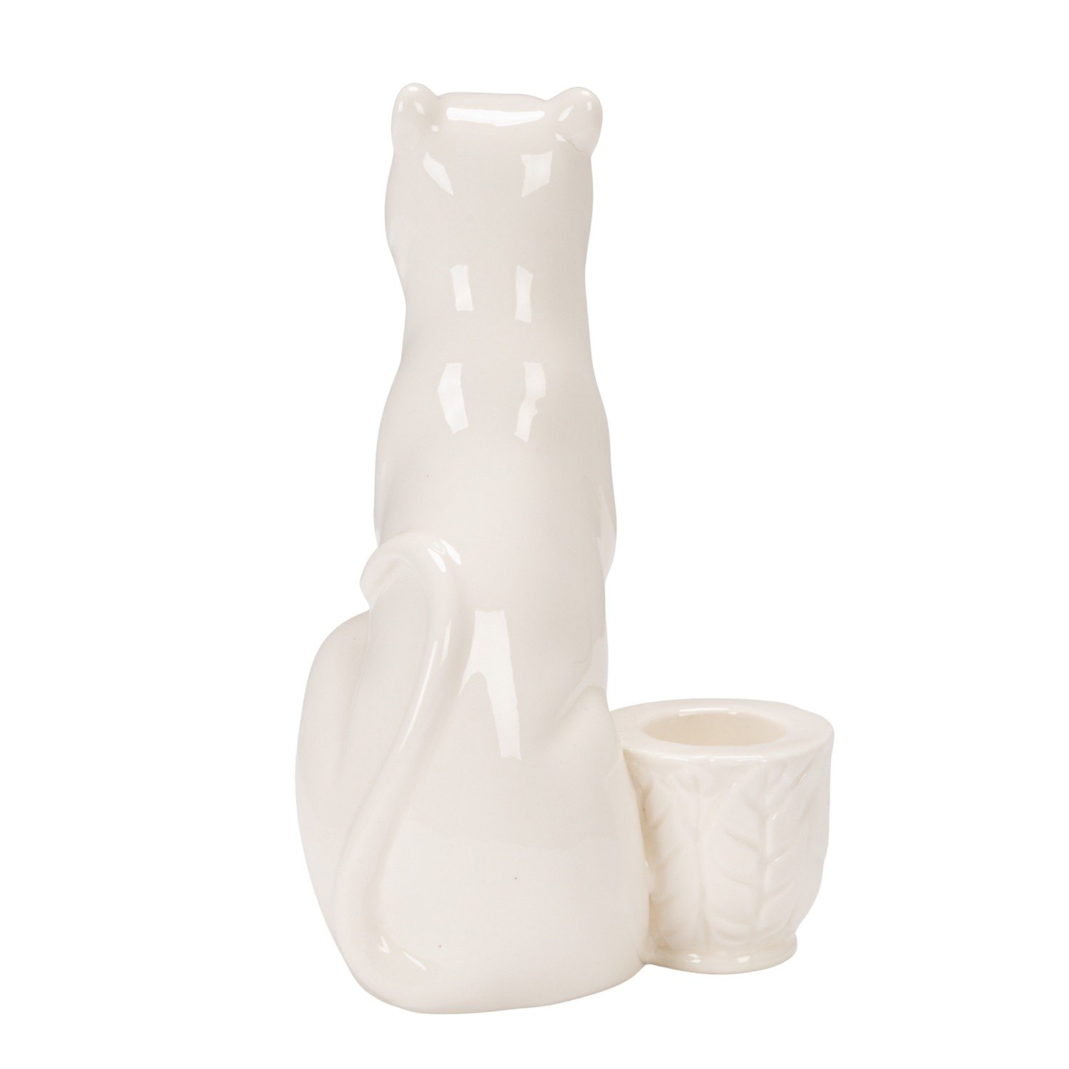 Stoneware Taper Holder with Leopard, White