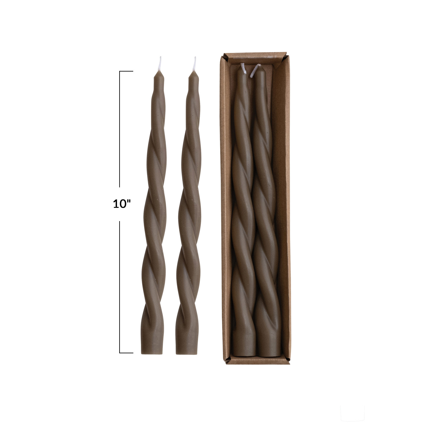 Catalog Name: 10"H Unscented Twisted Taper Candles in Box, Brown, Set of 2 (Est. Burn Time 5 Hours)