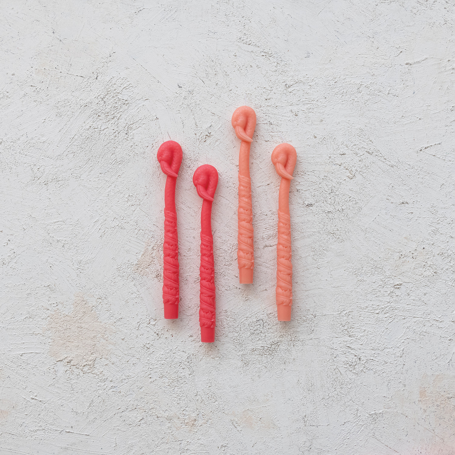 Unscented Flamingo Shaped Taper Candles in Box, Peach Color, Set of 2