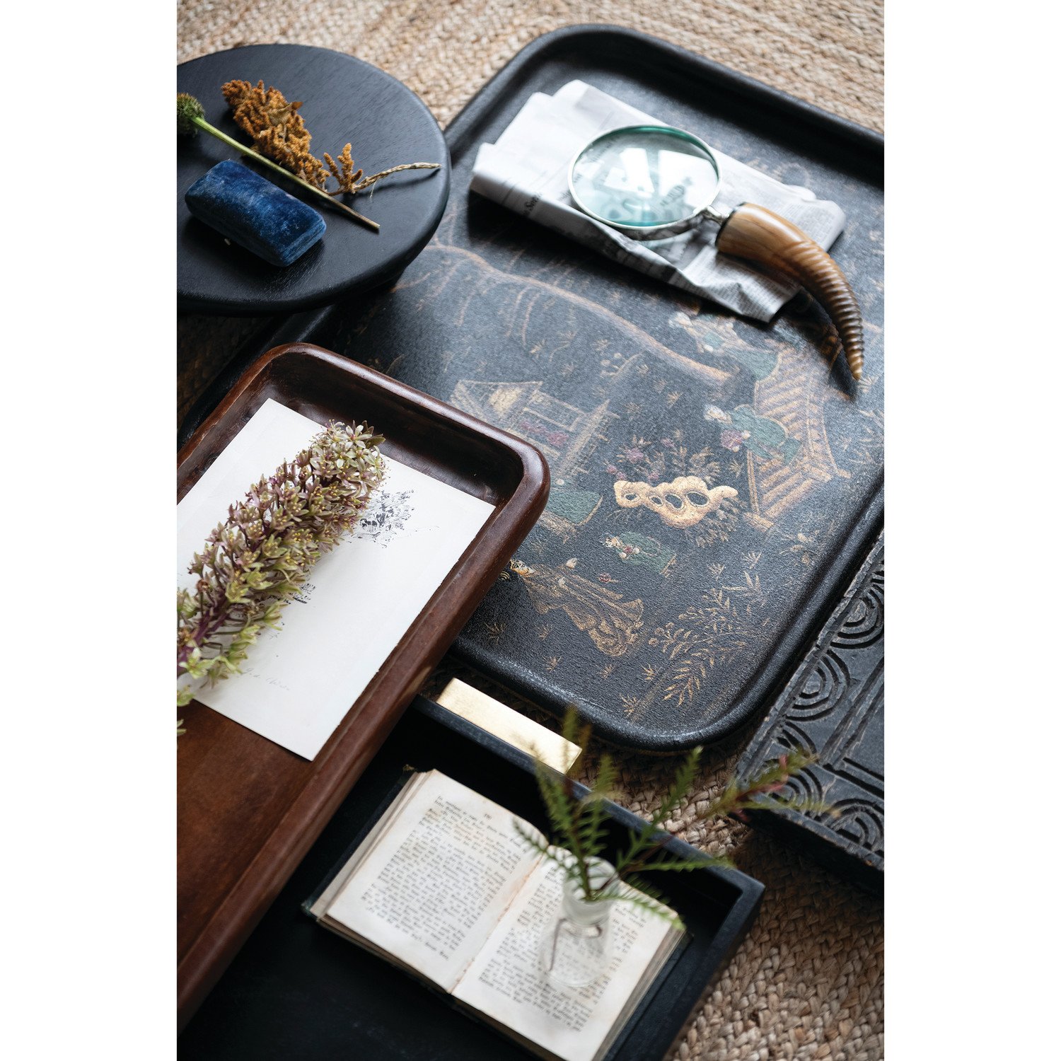 Decorative Hand-Painted Metal Tray with Chinoiserie