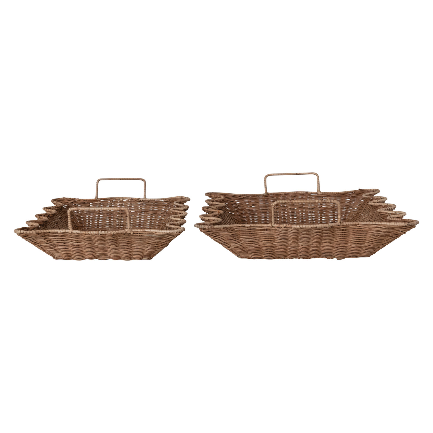 Decorative Hand-Woven Rattan Scalloped Nesting Trays with Handles, Natural, Set of 2