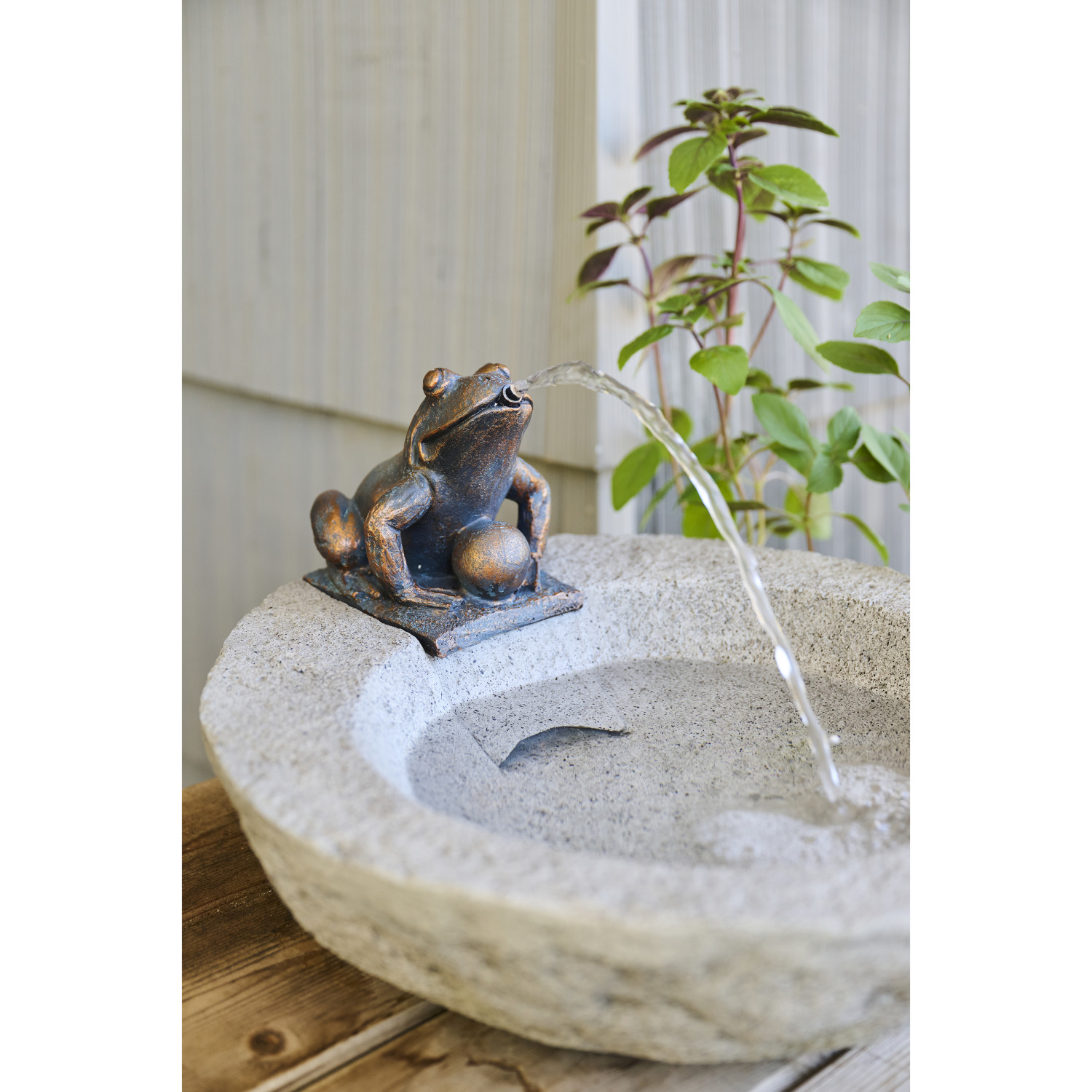 Resin Fountain with Frog, 6' Cord, Concrete & Bronze Finish (Includes Pump Kit)