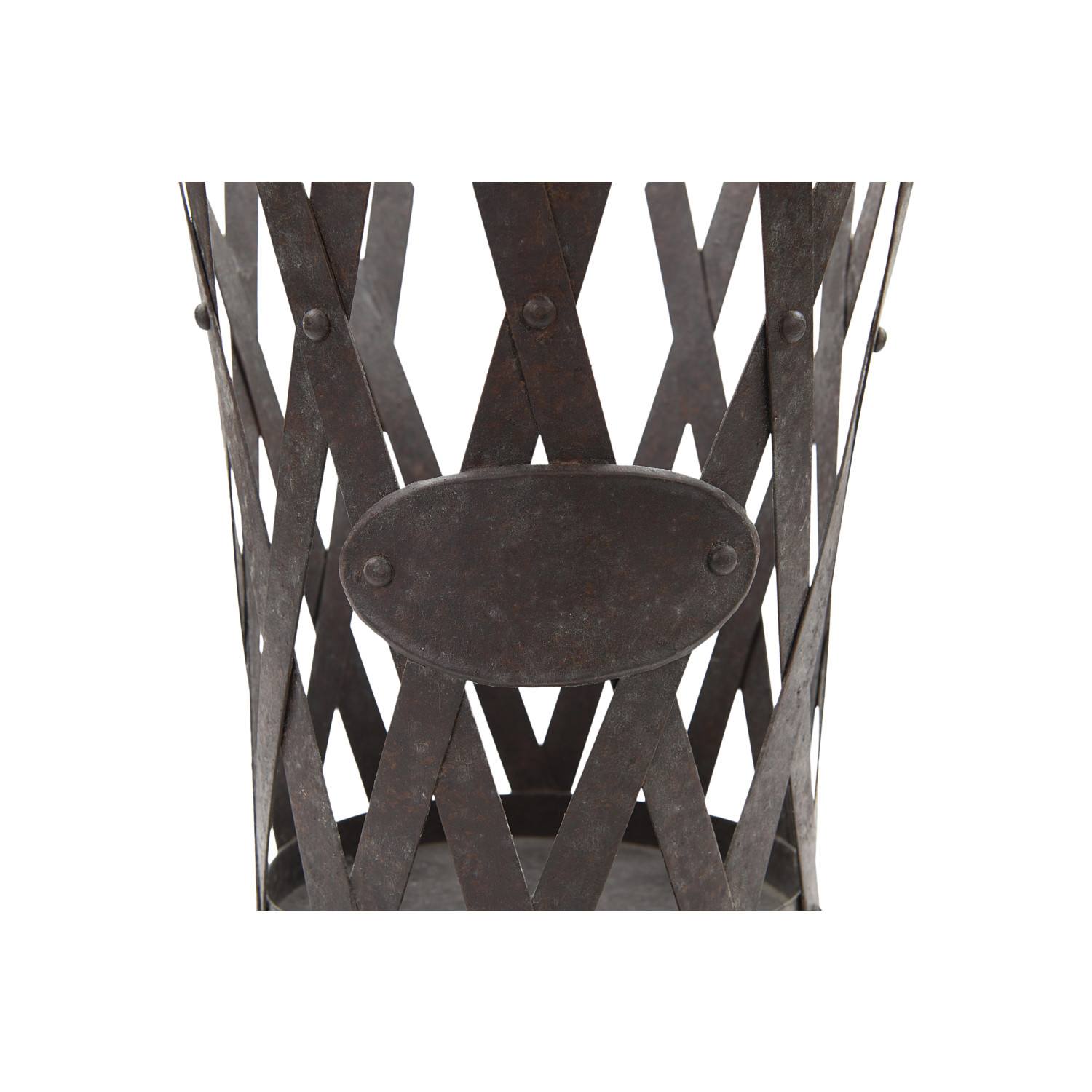 The sides on these planters are designed after an accordion style gate. There are large openings throughout for full view of its contents. Fill each with a potted plant or other items. If wanting to vary their uses, place a small plastic bag in the large and use for a garbage can while placing pillar candles in the two smaller ones.