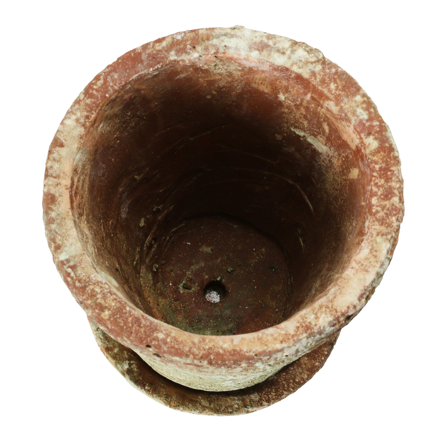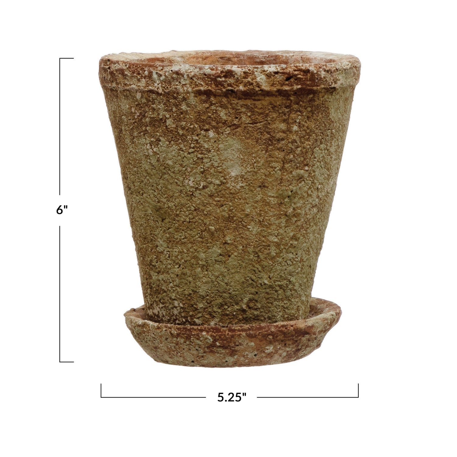 Catalog Name: 5-1/4" Round x 6"H Cement Planter w/ Saucer, Distressed Terra-cotta Finish, Set of 2 (Holds 4" Pot)