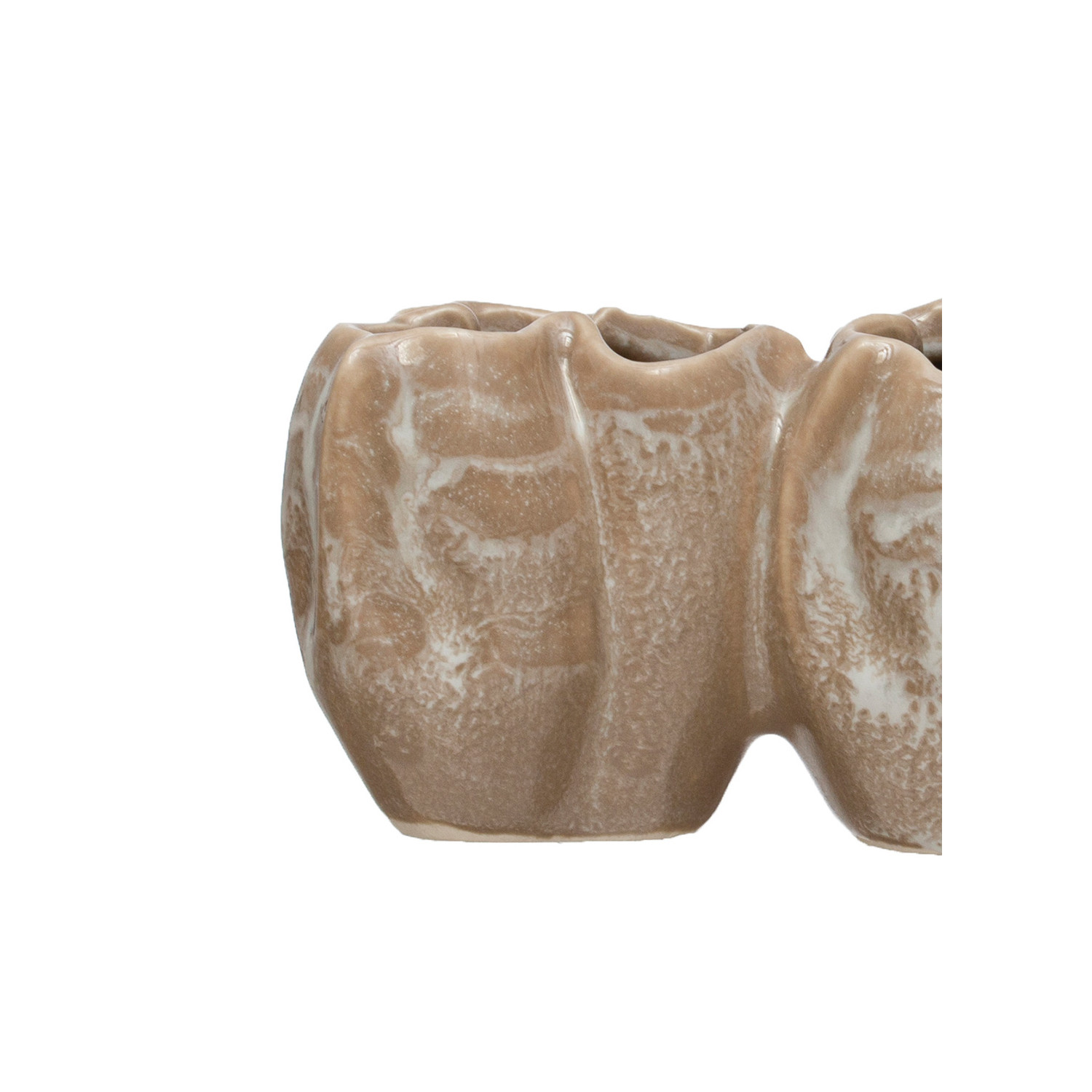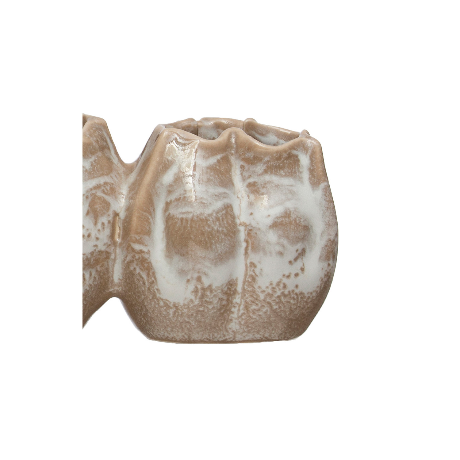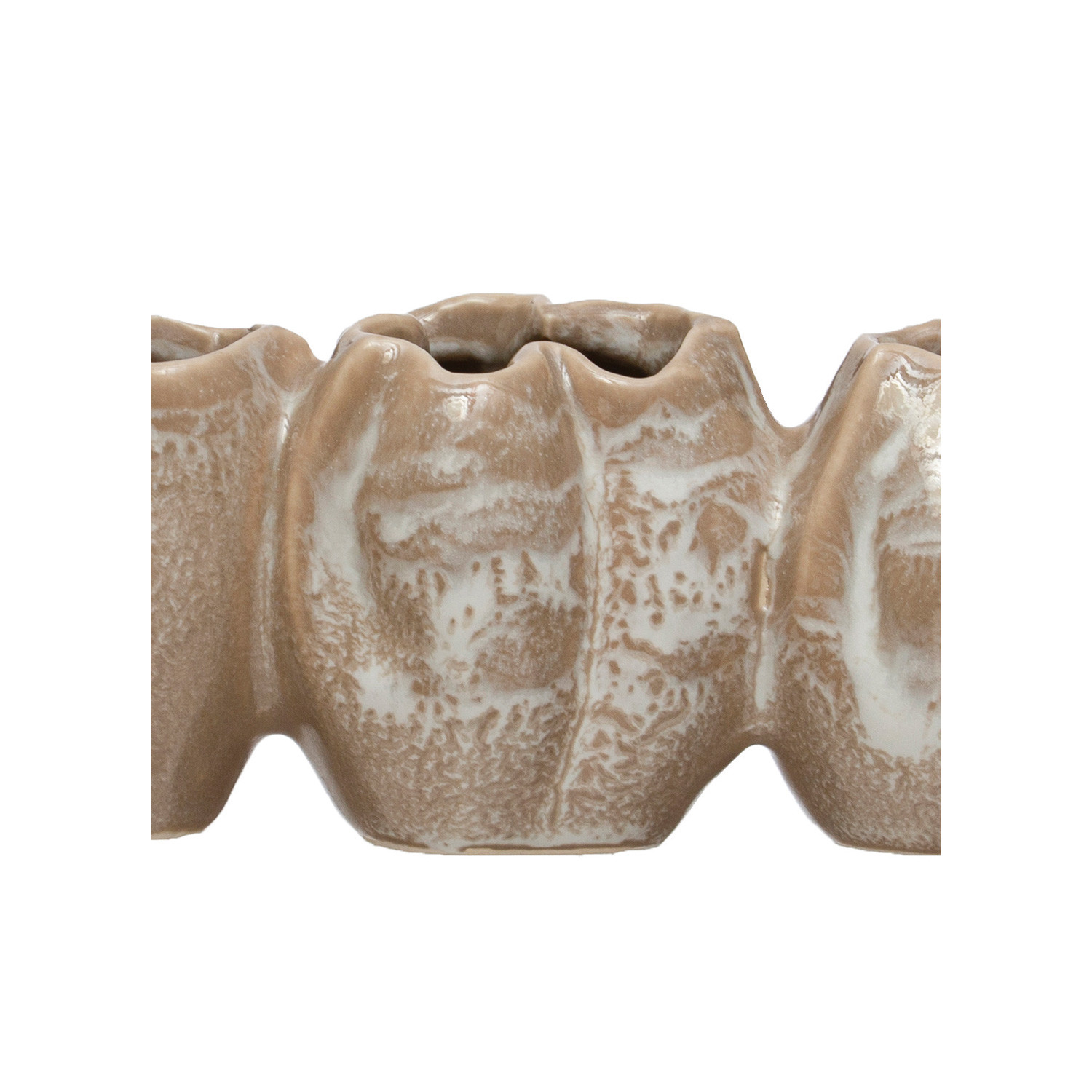 Catalog Name: 7"L x 2-3/4"W x 2-1/2"H Stoneware Pod Shaped Vase w/ 3 Sections, Reactive Glaze, Tan Color (Each One Will Vary)