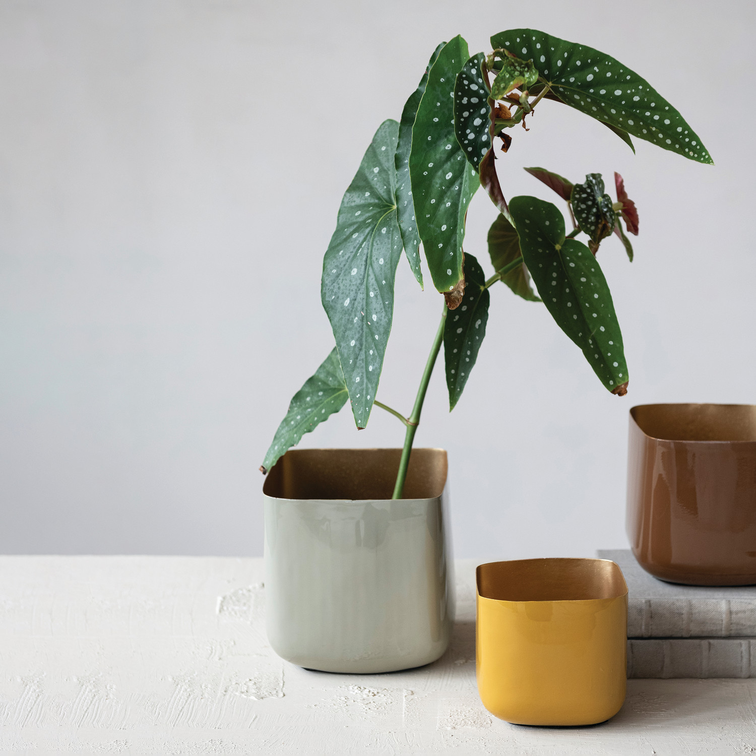 Enameled Metal Planters, Set of 3 (Holds 6", 5" & 4" Pots)