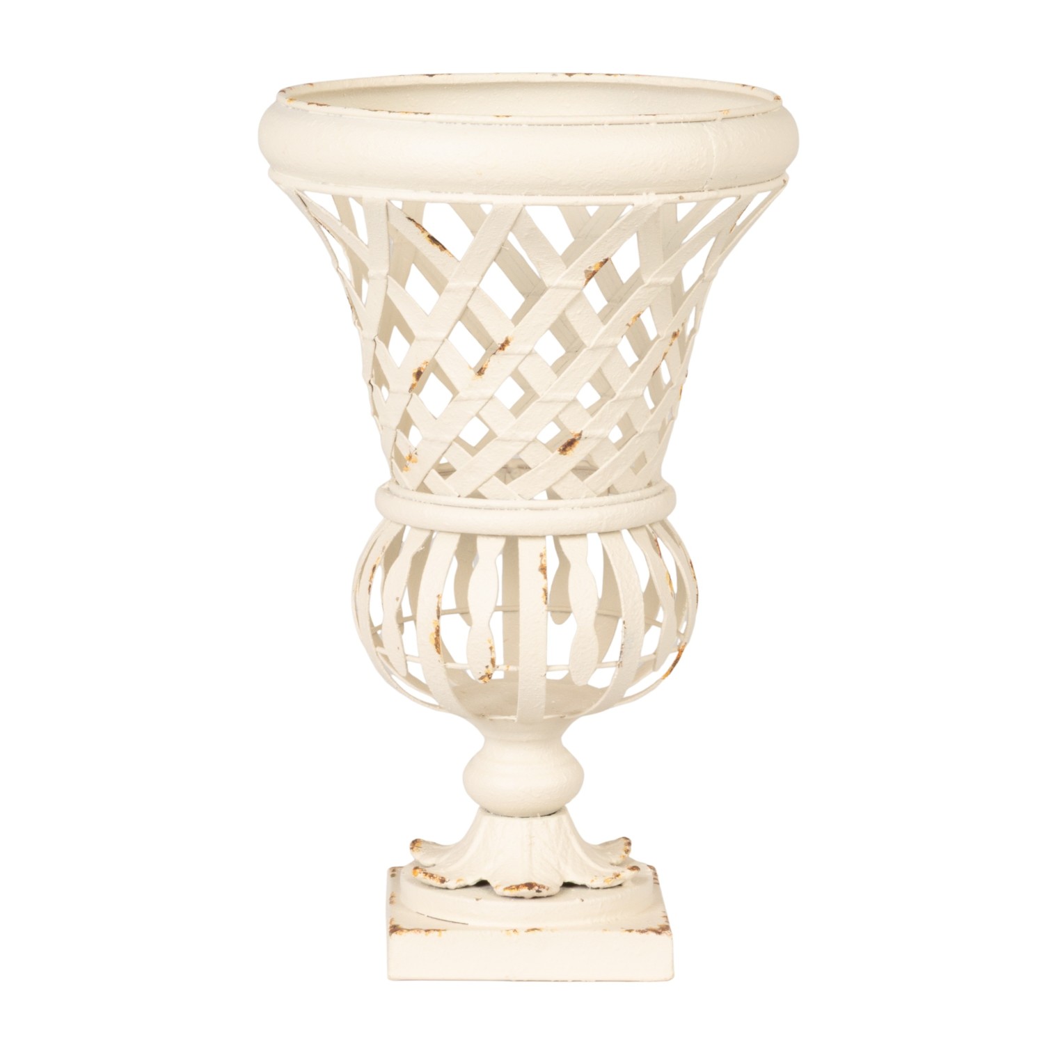 Catalog Name: 9" Round x 14-3/4"H Woven Metal Footed Urn, Distressed Finish, White