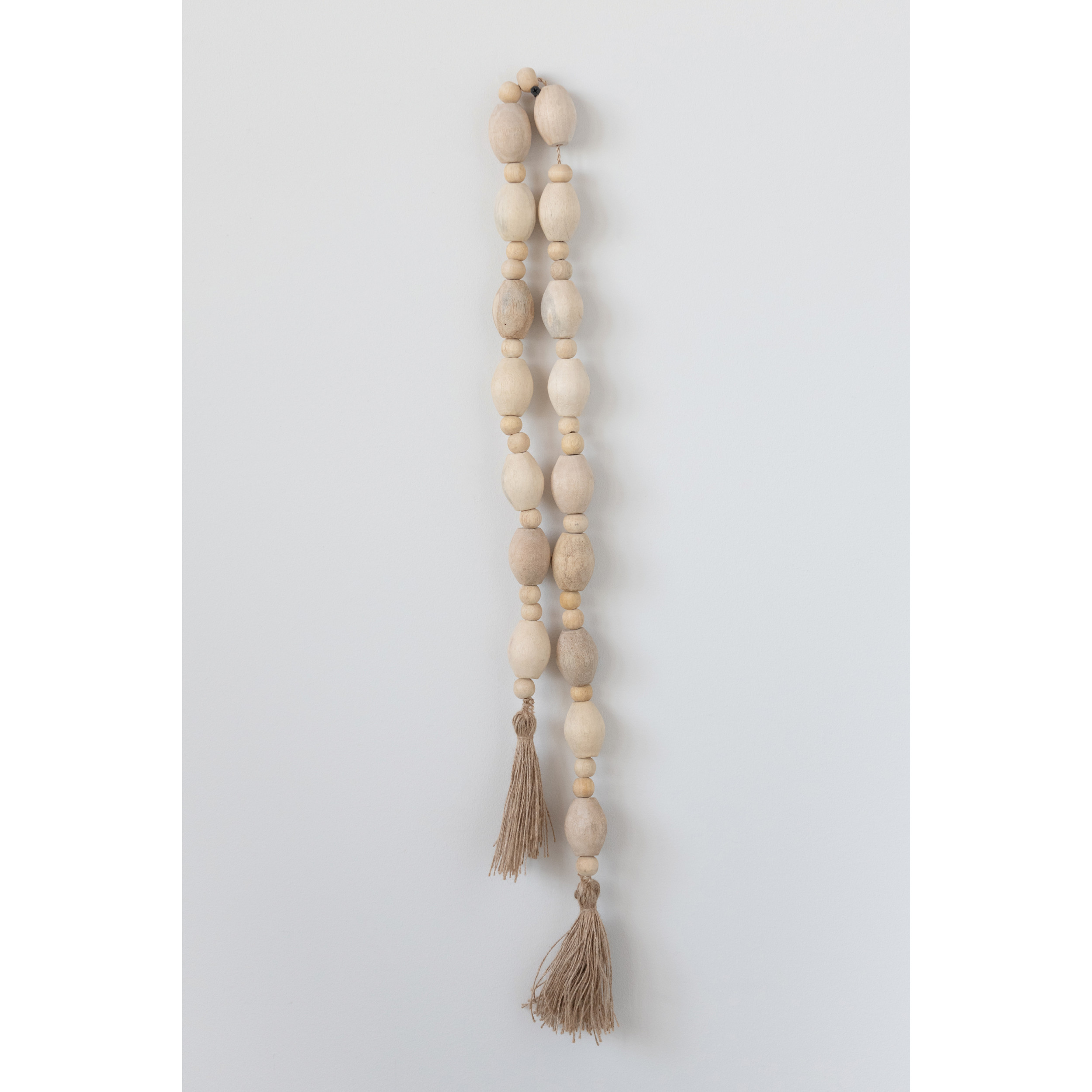Catalog Name: 60"L Mango Wood Bead Garland w/ Jute Tassels, Natural