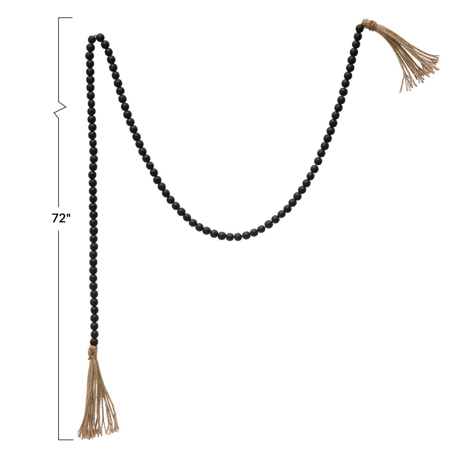 Catalog Name: 72"L Paulownia Wood Bead Garland w/ Jute Tassels, Distressed Black & Natural