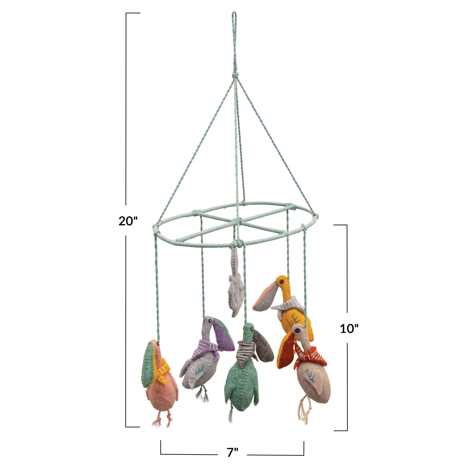 Catalog Name: 10"L x 7"W x 20"H Wool Felt Pelicans & Anchor Mobile, Multi Color