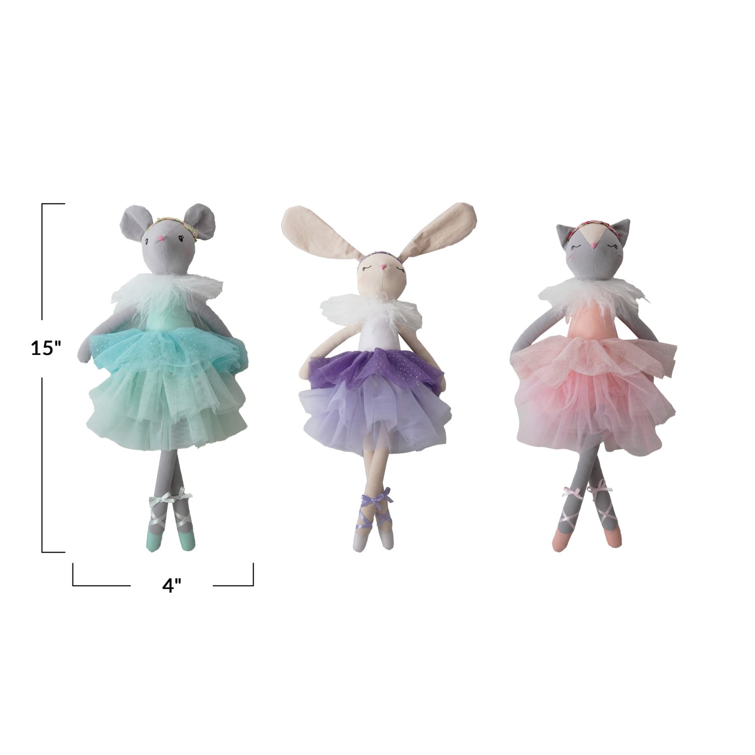 Catalog Name: 4"L x 15"H Fabric Animal in Tutu, Multi Color, 3 Styles