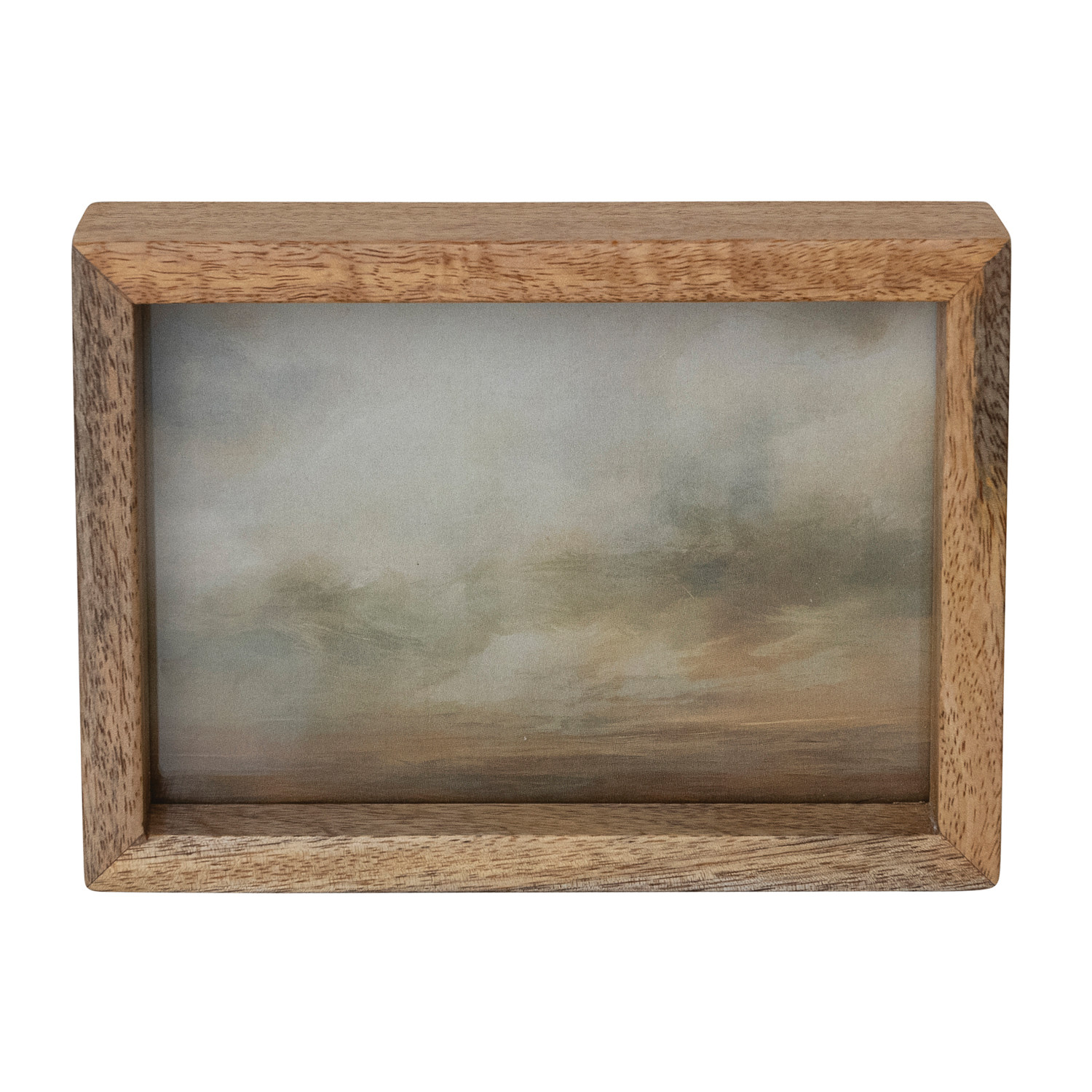 Catalog Name: 5"L x 7"H Mango Wood & Glass Floating Two-Sided Photo Frame, Natural (Holds 4" x 6" Photo)