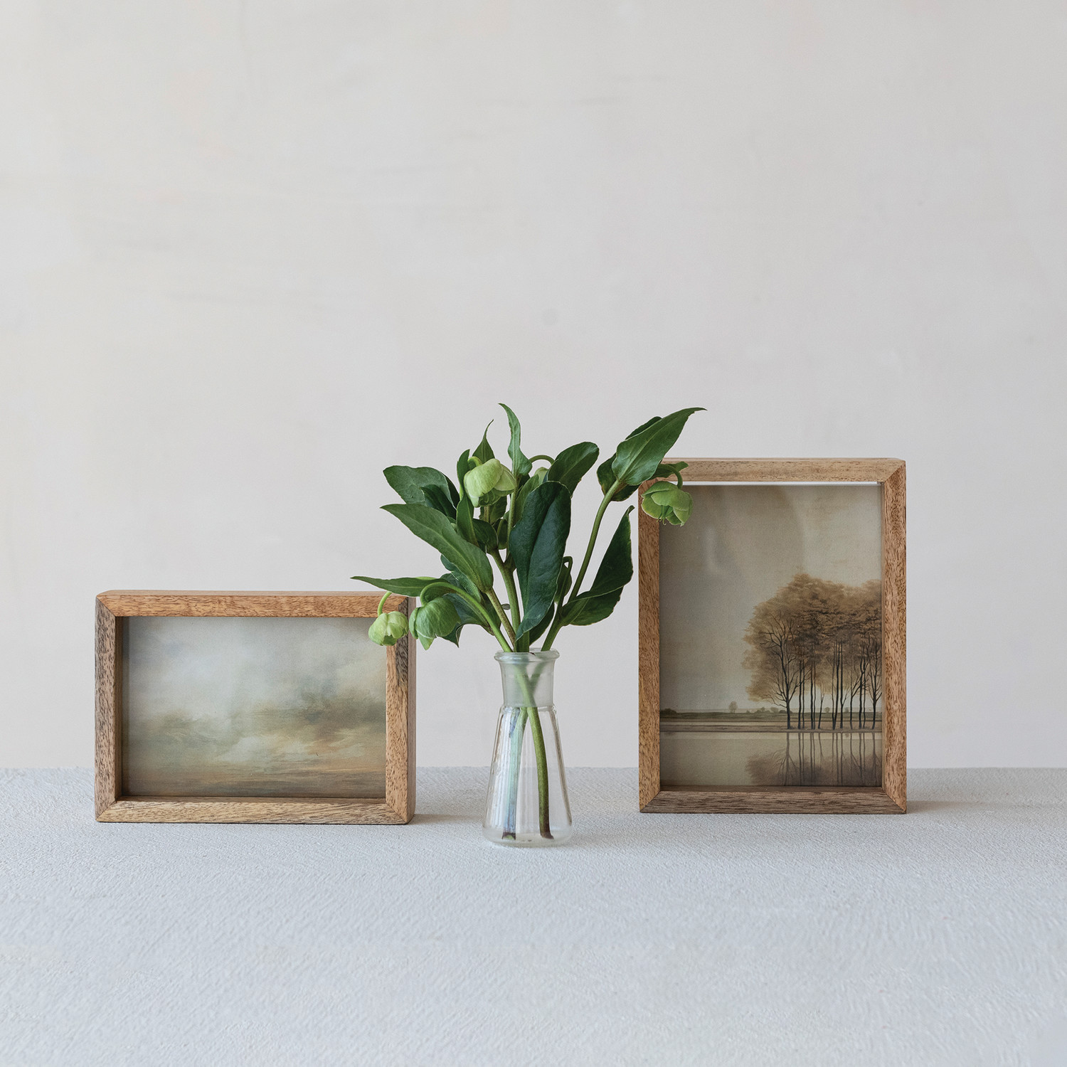Mango Wood & Glass Floating Two-Sided Photo Frame, Natural (Holds 4" x 6" Photo)