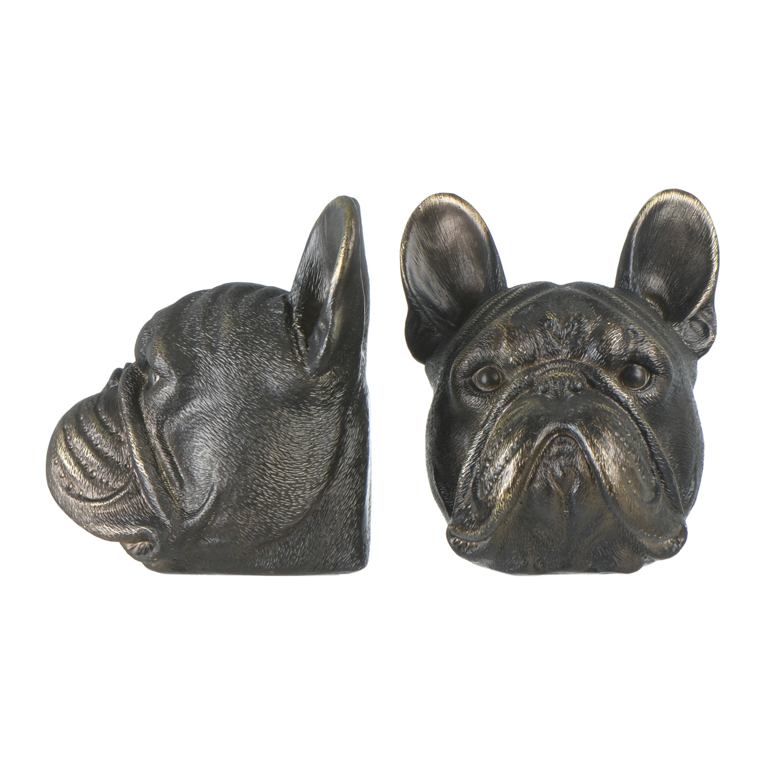 Catalog Name: 4-3/4"L x 4-1/2"W x 5-1/2"H Resin French Bulldog Head Shaped Bookends, Antique Bronze Finish, Set of 2