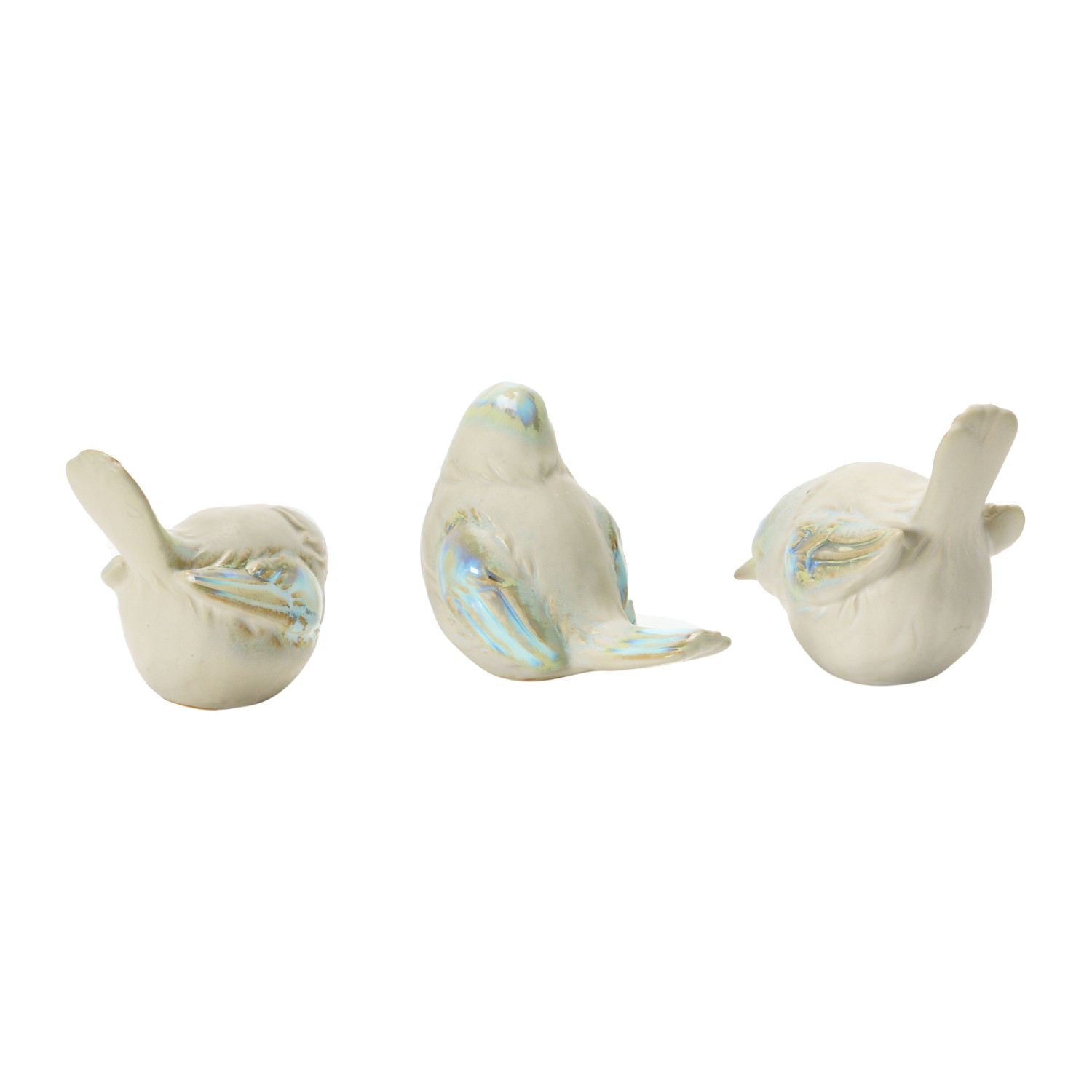 Catalog Name: 4"L x 2-1/4"W x 3-1/4"H Stoneware Bird, Reactive Glaze, White & Blue, 3 Styles (Each One Will Vary)