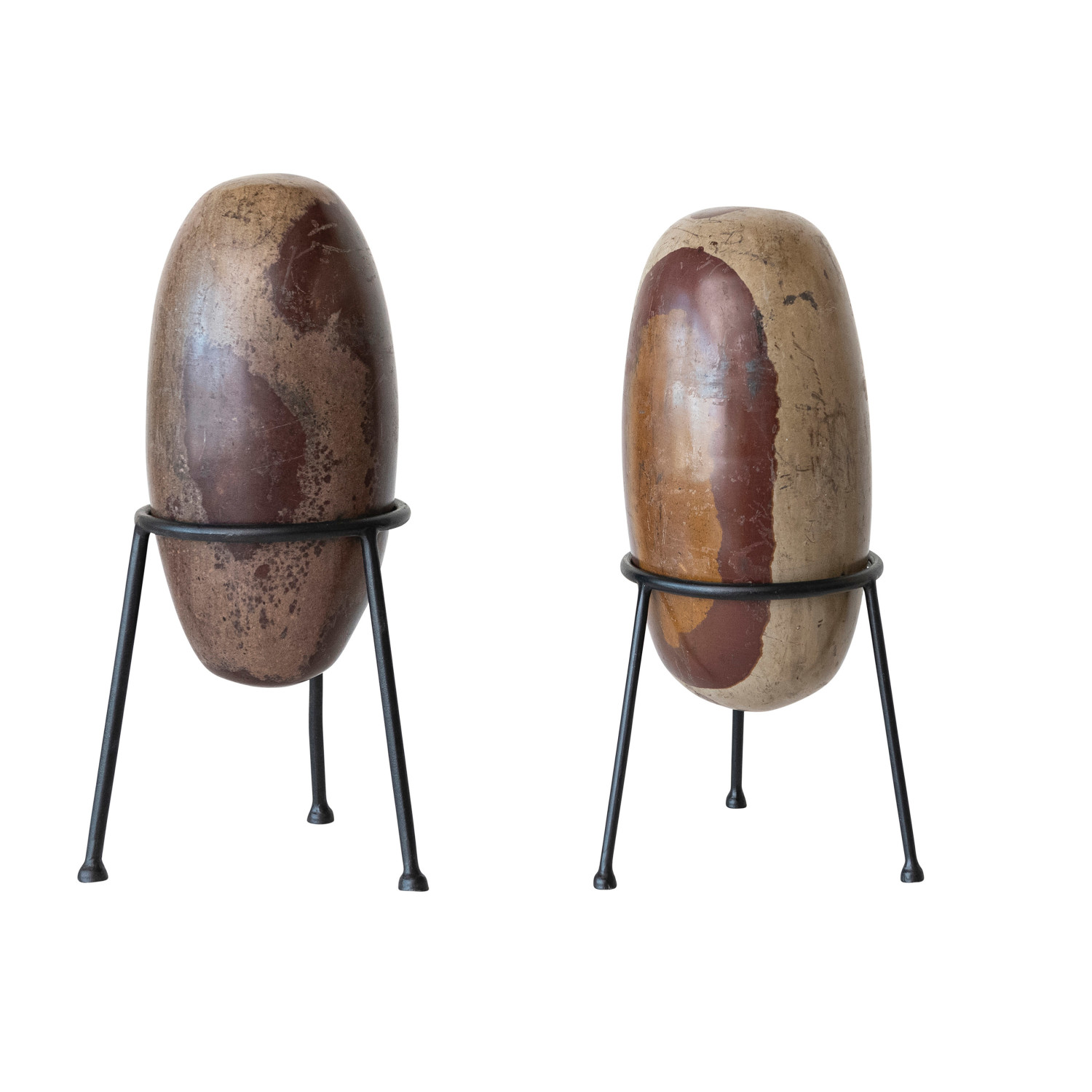 Granite Stone w/ Metal Stand, Set of 2 (Each One Will Vary)