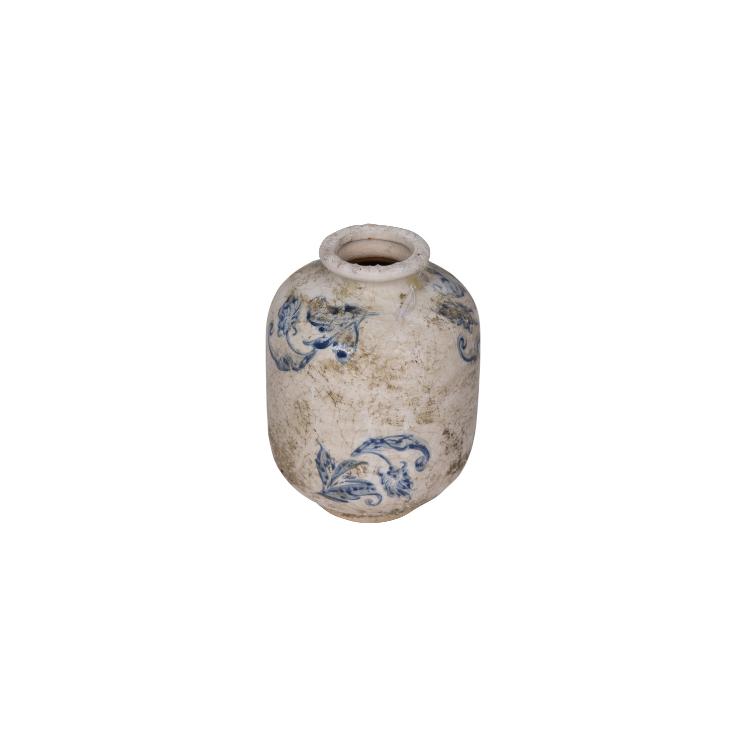 Catalog Name: 4" Round x 5-3/4"H Terra-cotta Vase w/ Transferware Pattern, Blue & White, 3 Styles