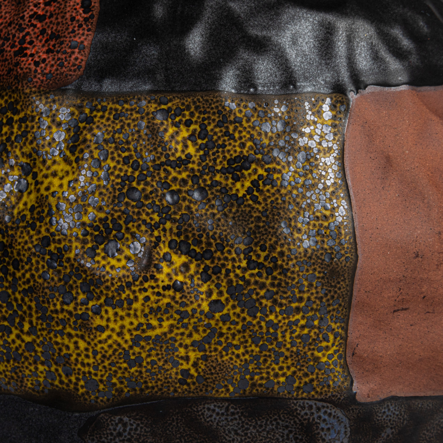 Catalog Name: 8-1/2"L x 7-1/4"W x 8-1/4"H Hand-Painted Textured Stoneware Vase w/ Handles, Reactive Glaze, Multi Color (Each One Will Vary)