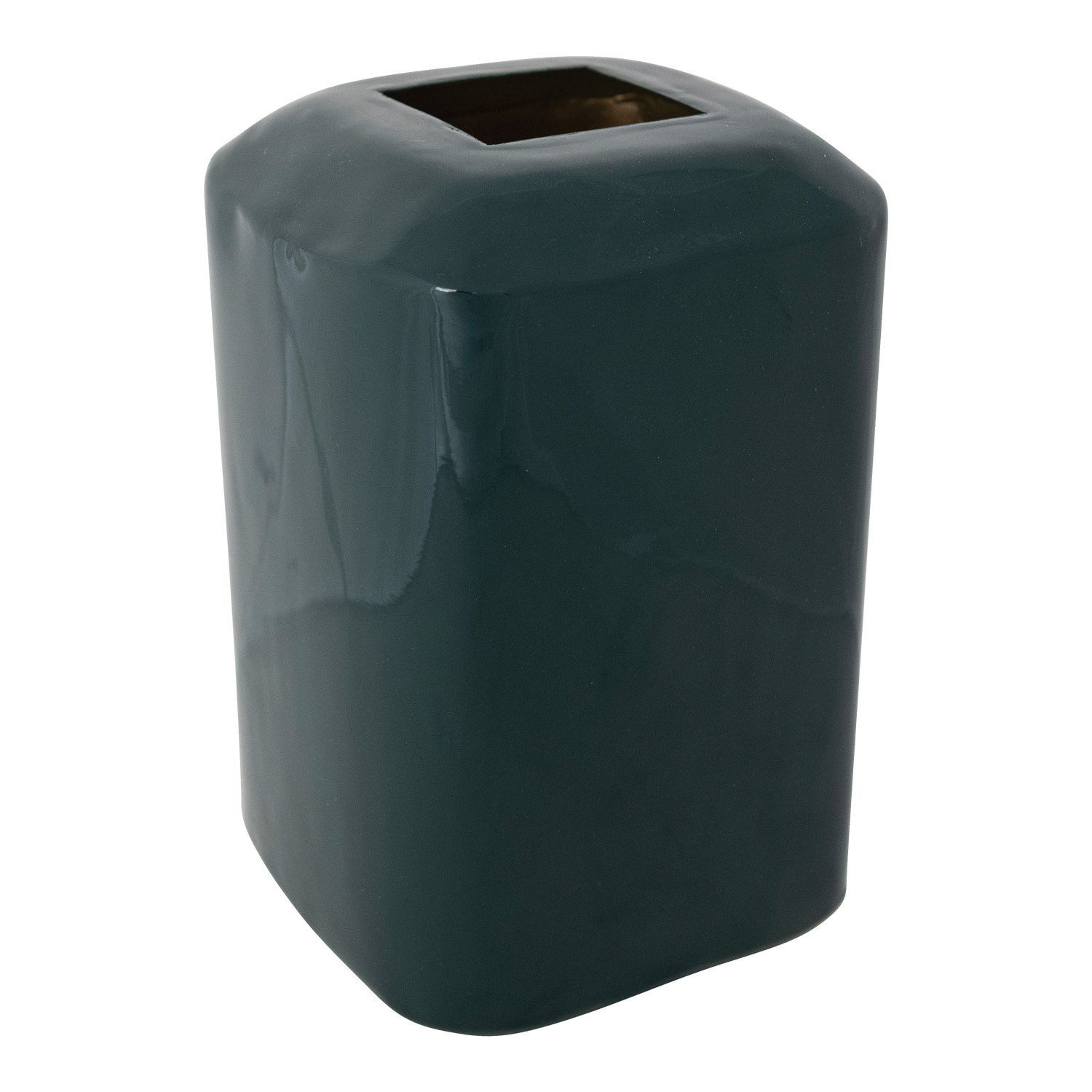 Catalog Name: 6-1/4" Square x 10"H Enameled Metal Vase, Teal
