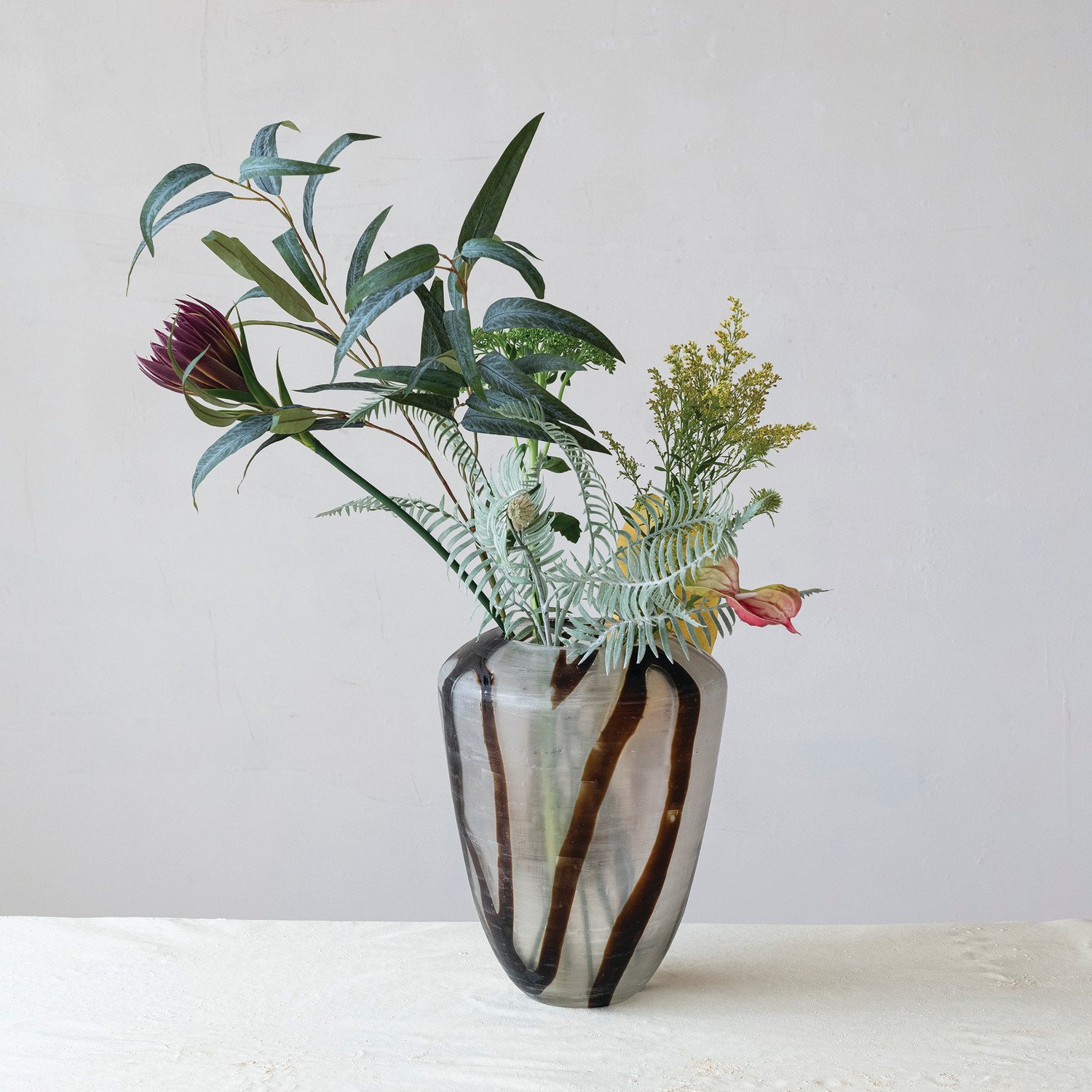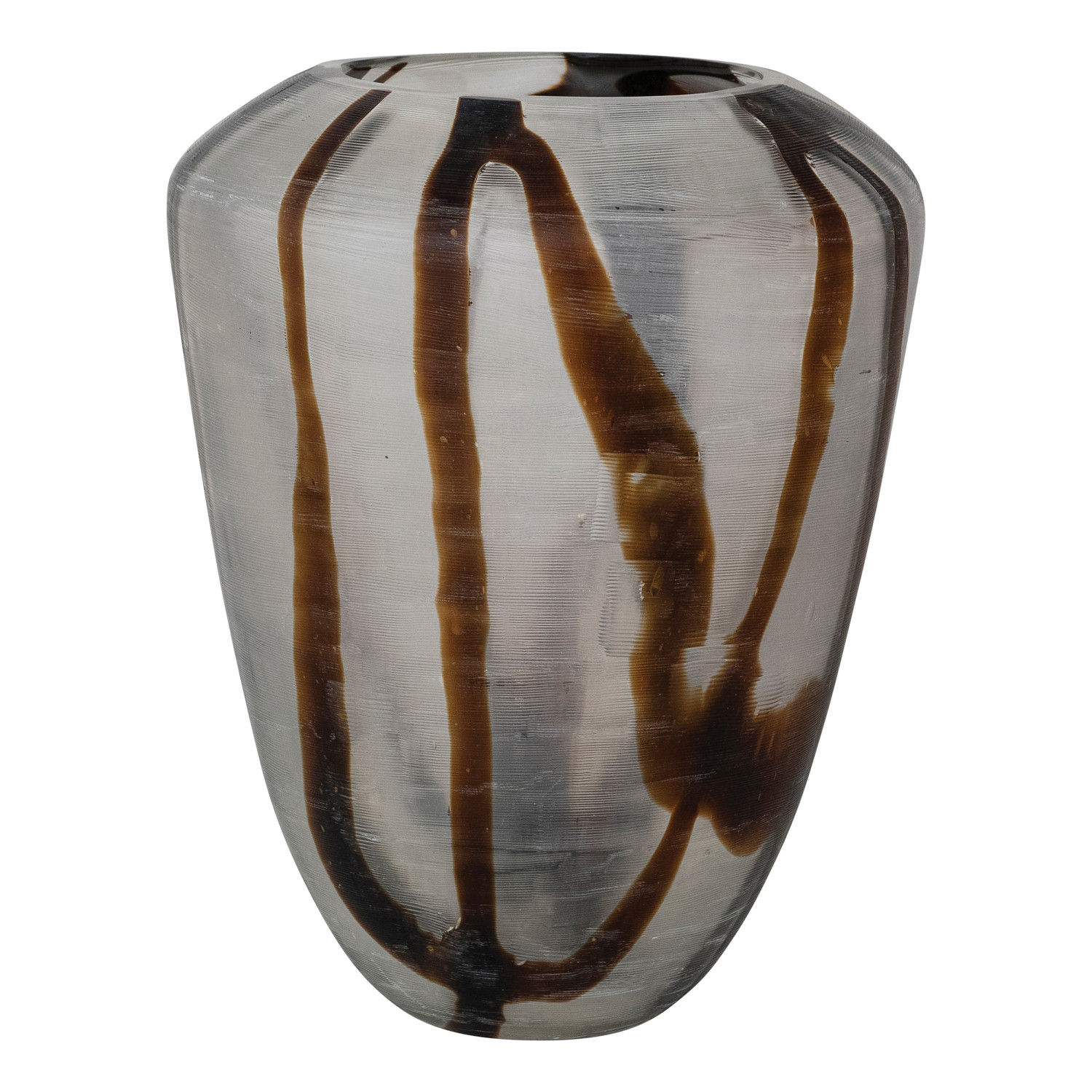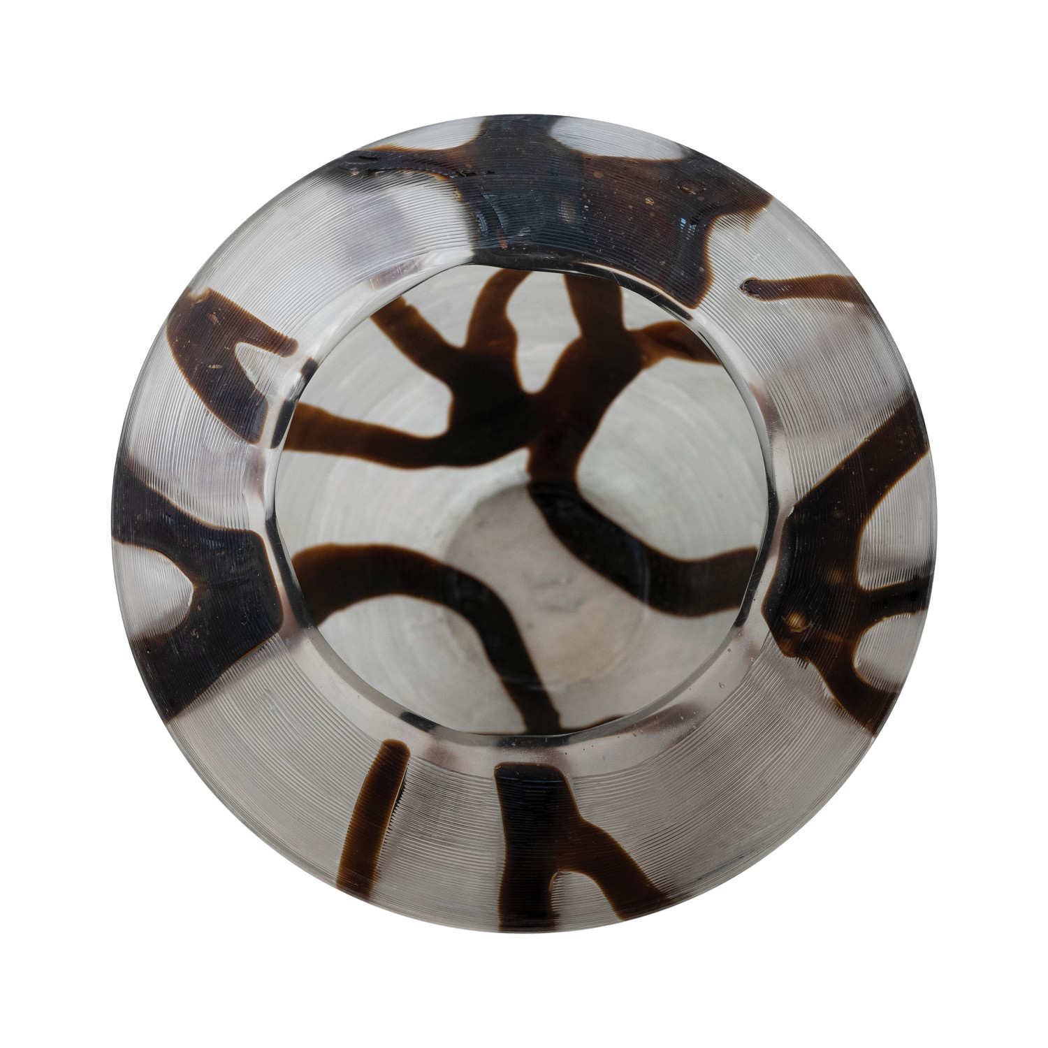 Hand-Blown Art Glass Vase with Brown Abstract Design (Each One Will Vary)