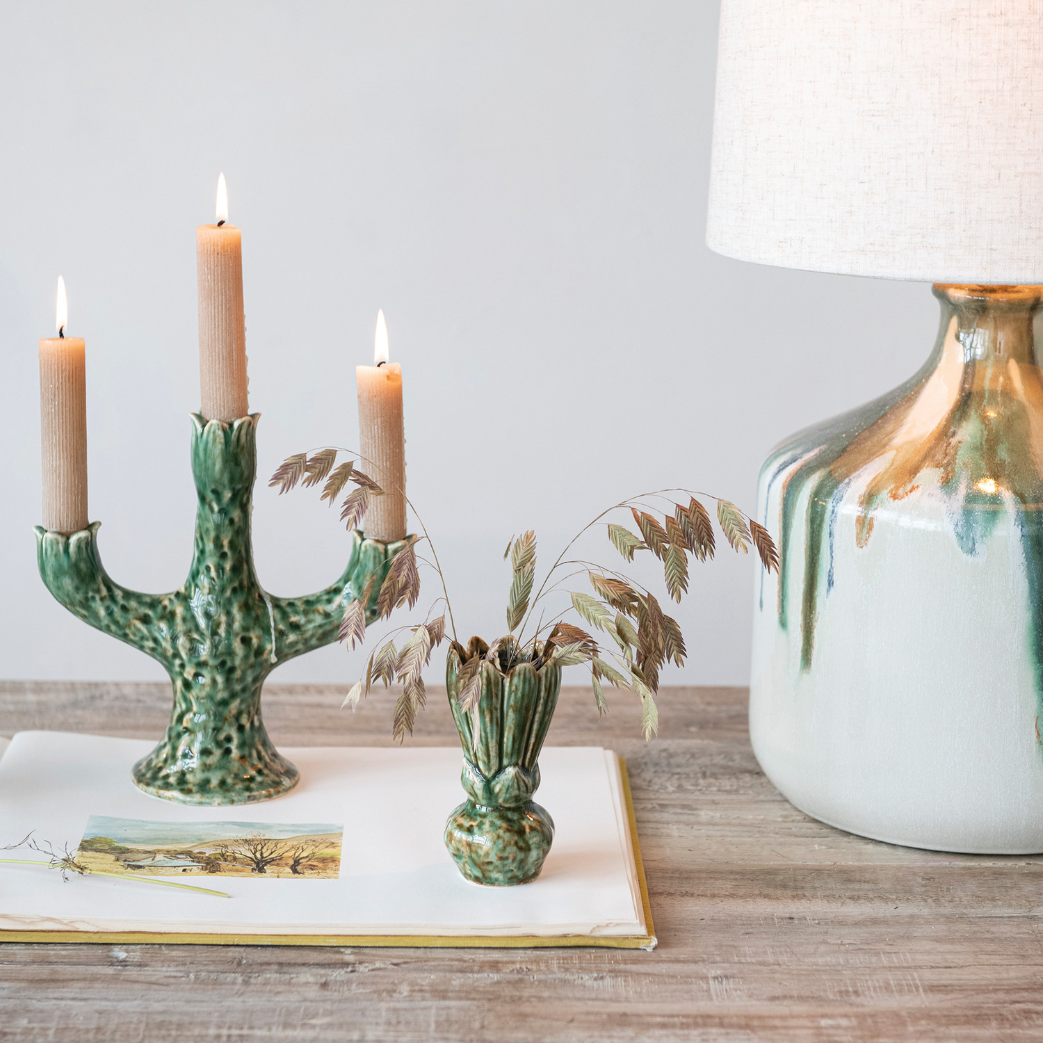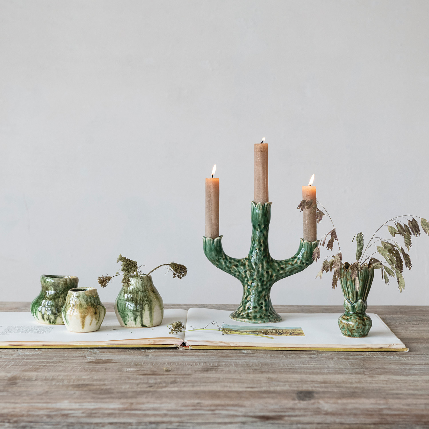 Stoneware Flower Shaped Vase, Green (Each One Will Vary)