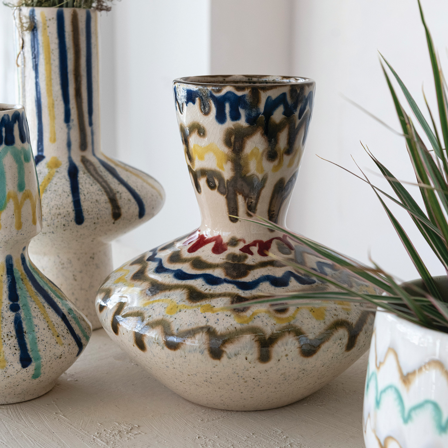 Hand-Painted Stoneware Vase, Reactive Crackle Glaze (Each One Will Vary)