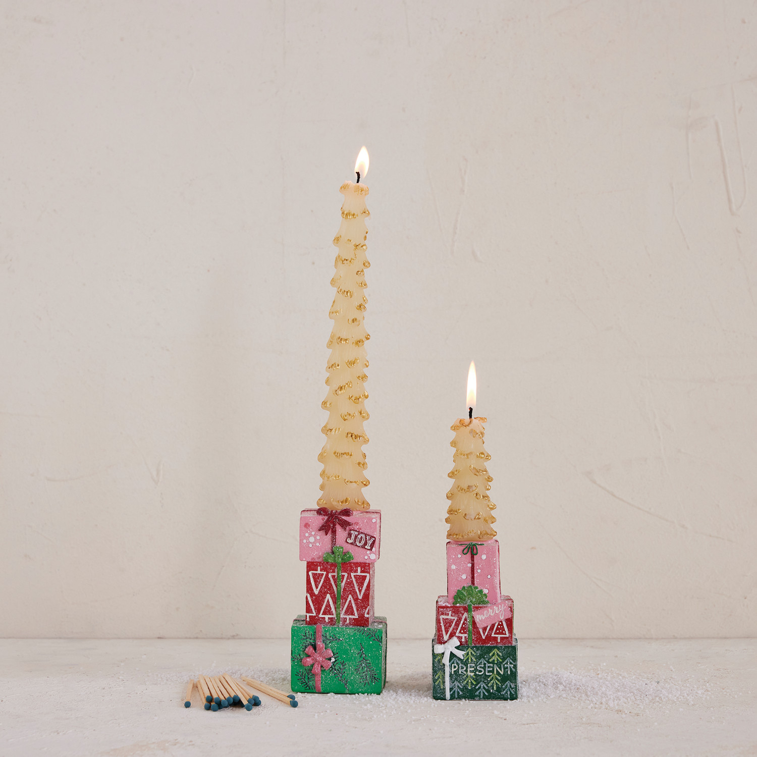 5"H & 4"H Resin Stacked Gifts Taper Holders, Set of 2 ©