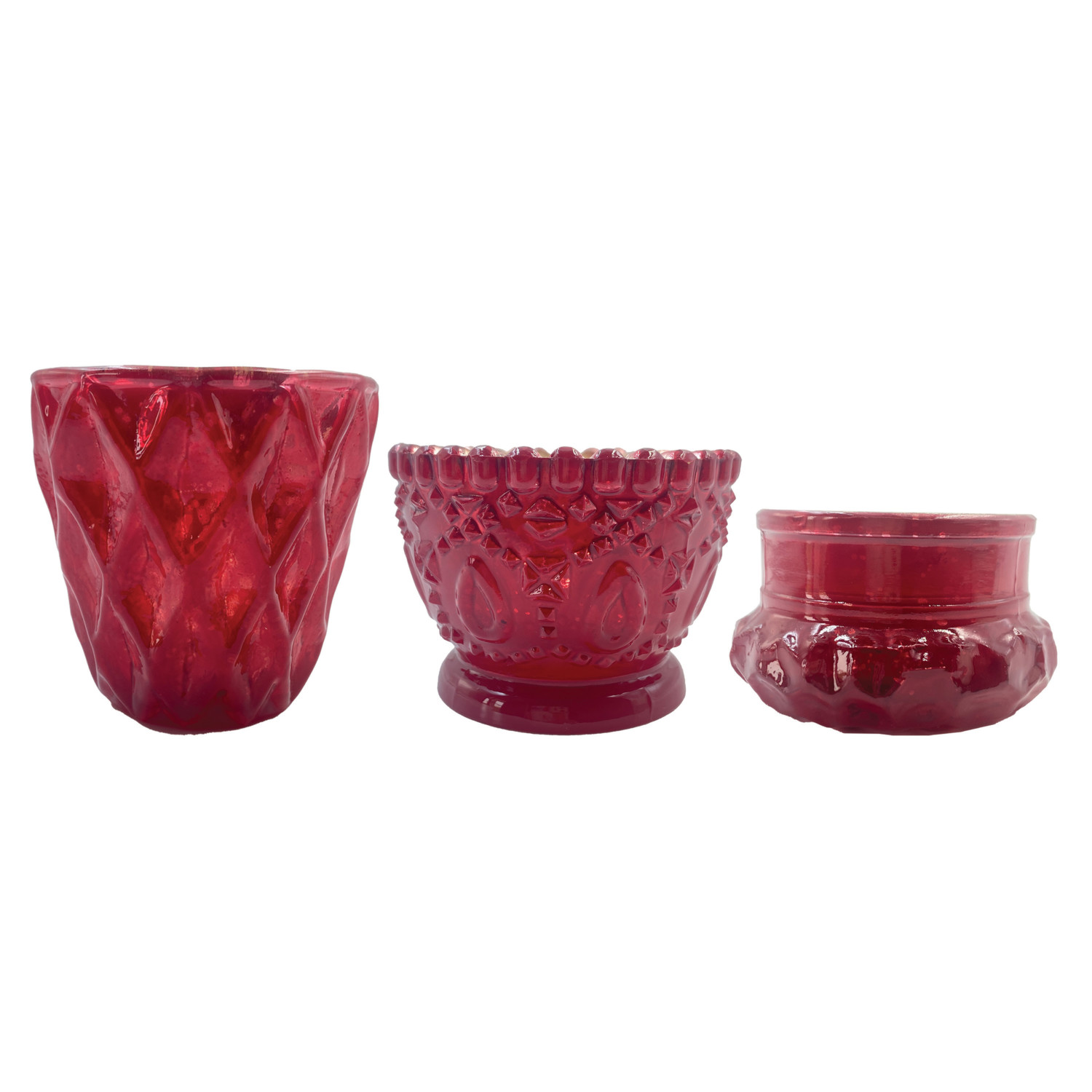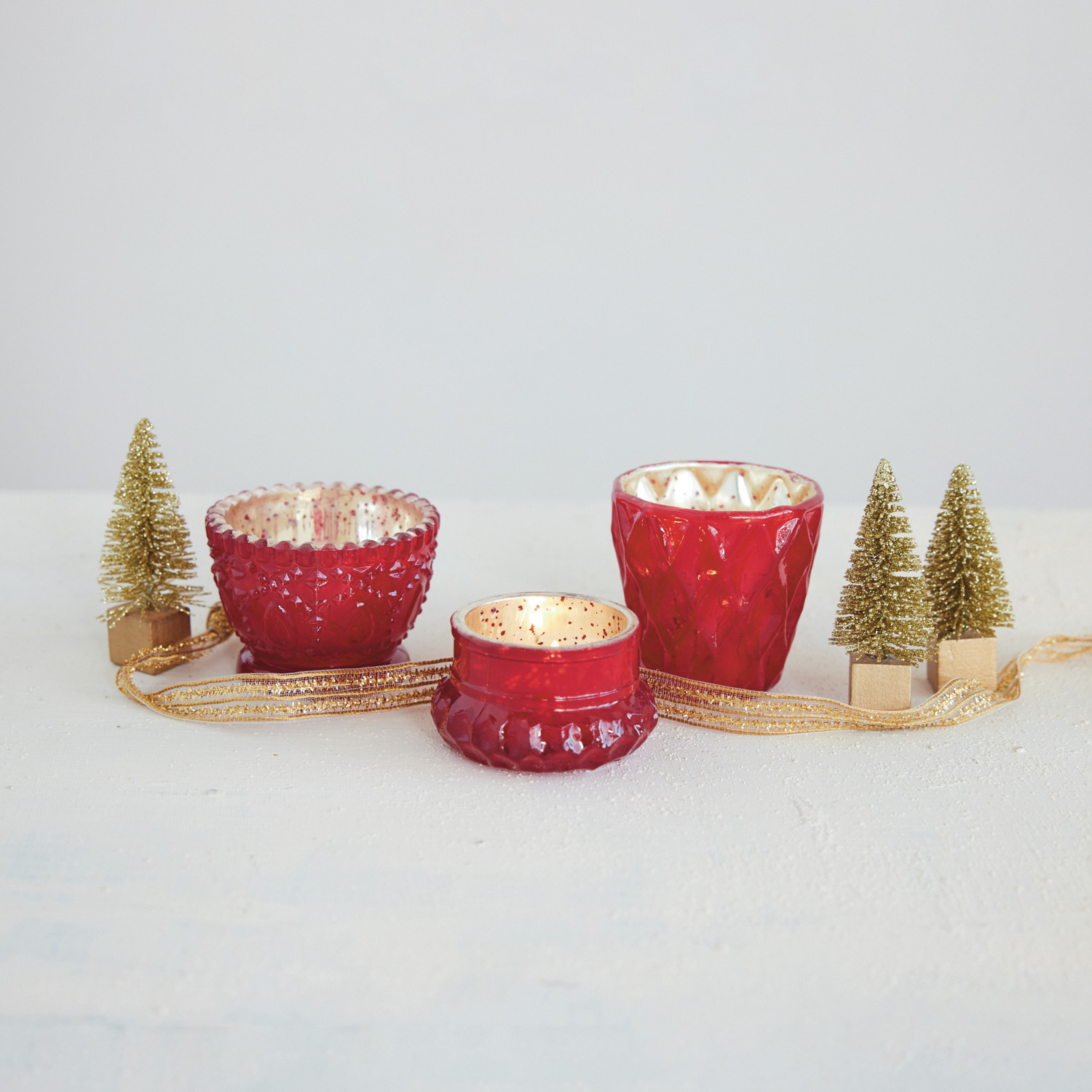 Catalog Name: 1-1/2"H - 2-3/4"H Embossed Mercury Glass Tealight/Votive Holder, Red, 3 Styles
