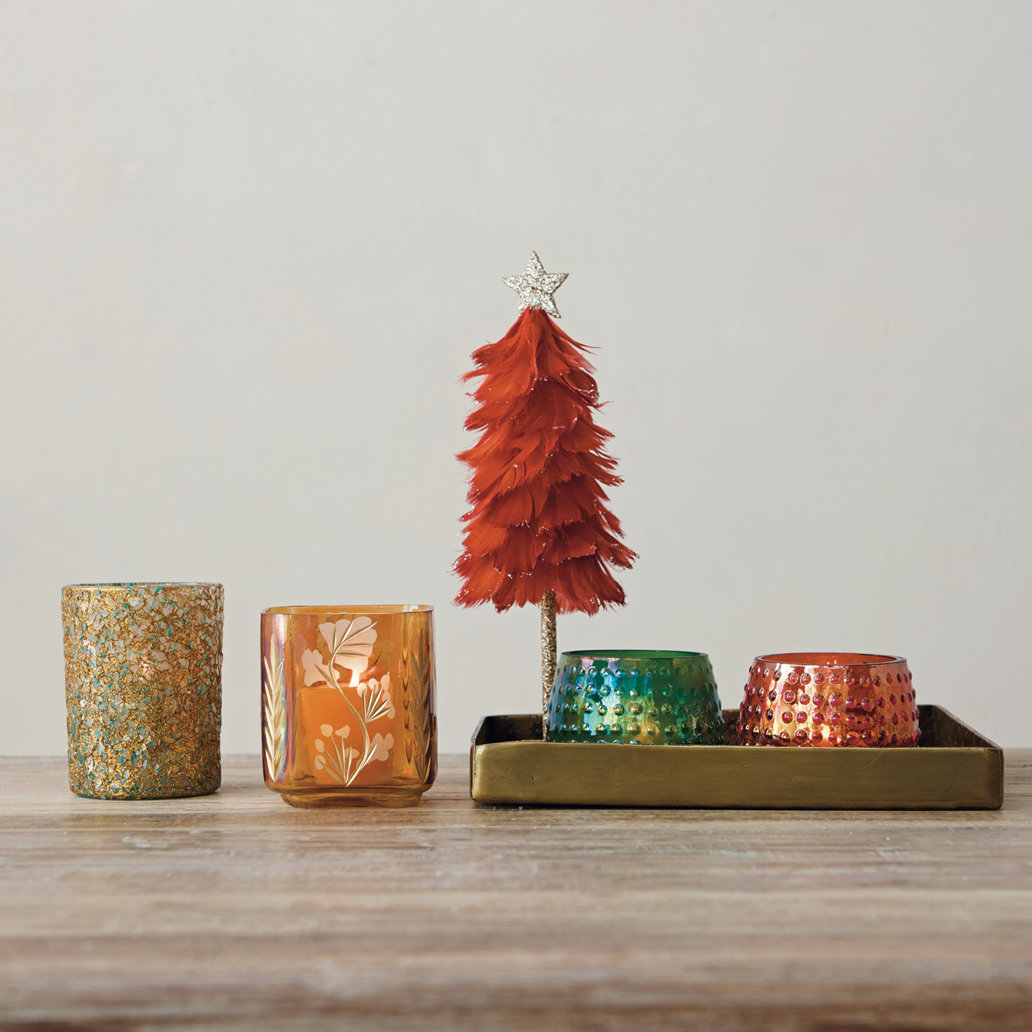 Glass Tealight/Votive Holder with Mica Flakes, Gold Finish & Teal