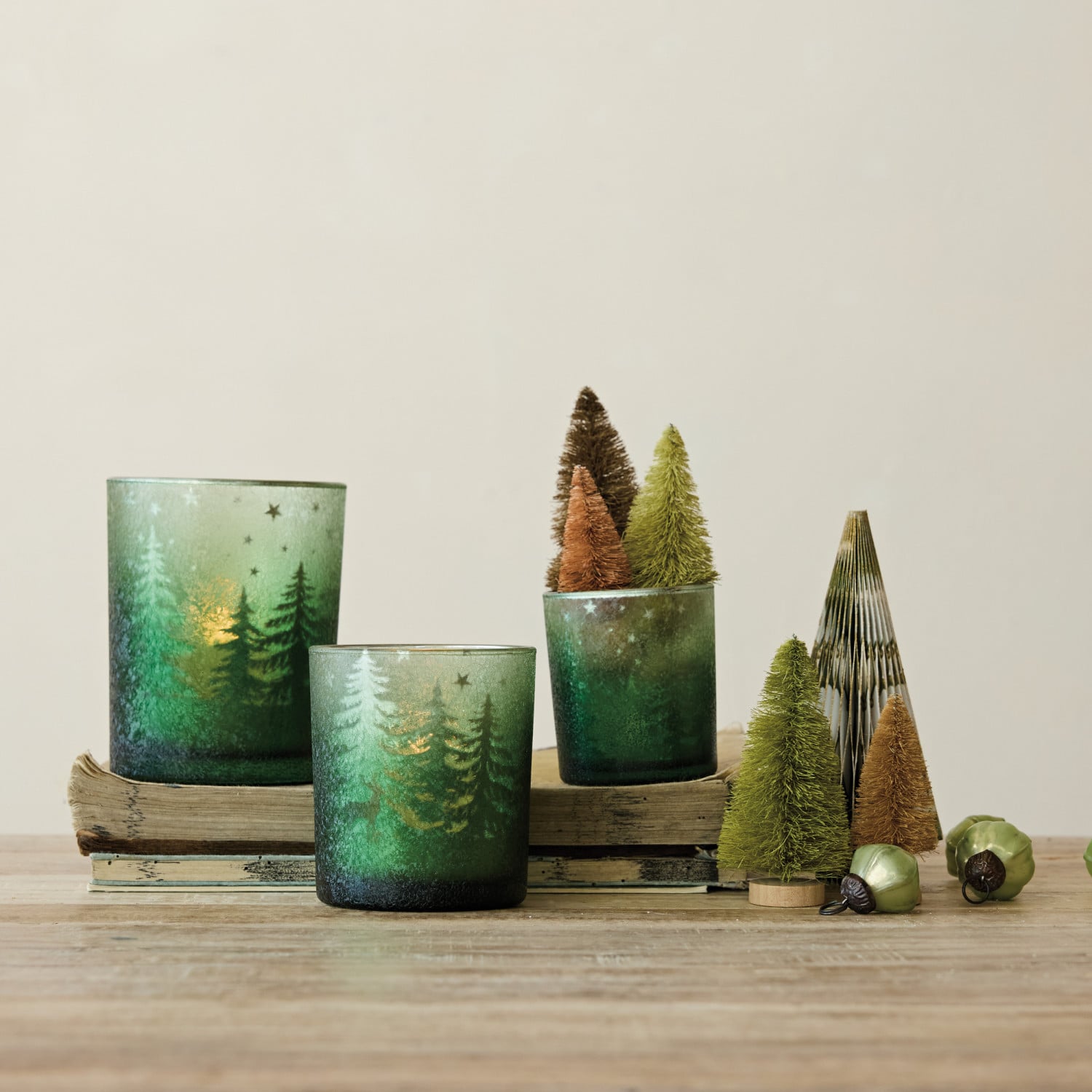 Mercury Glass Tealight/Votive Holder with Laser Etched Scene, Green
