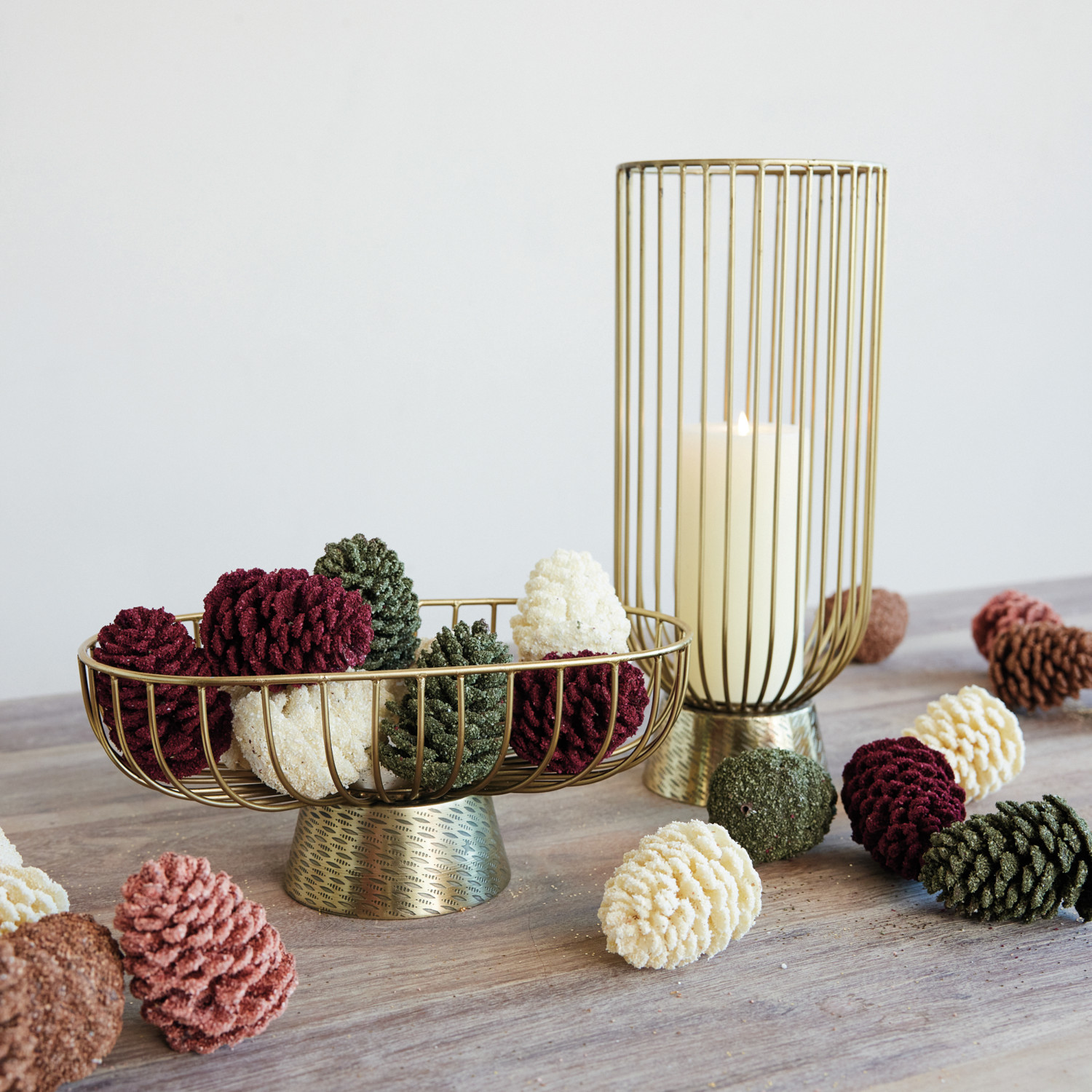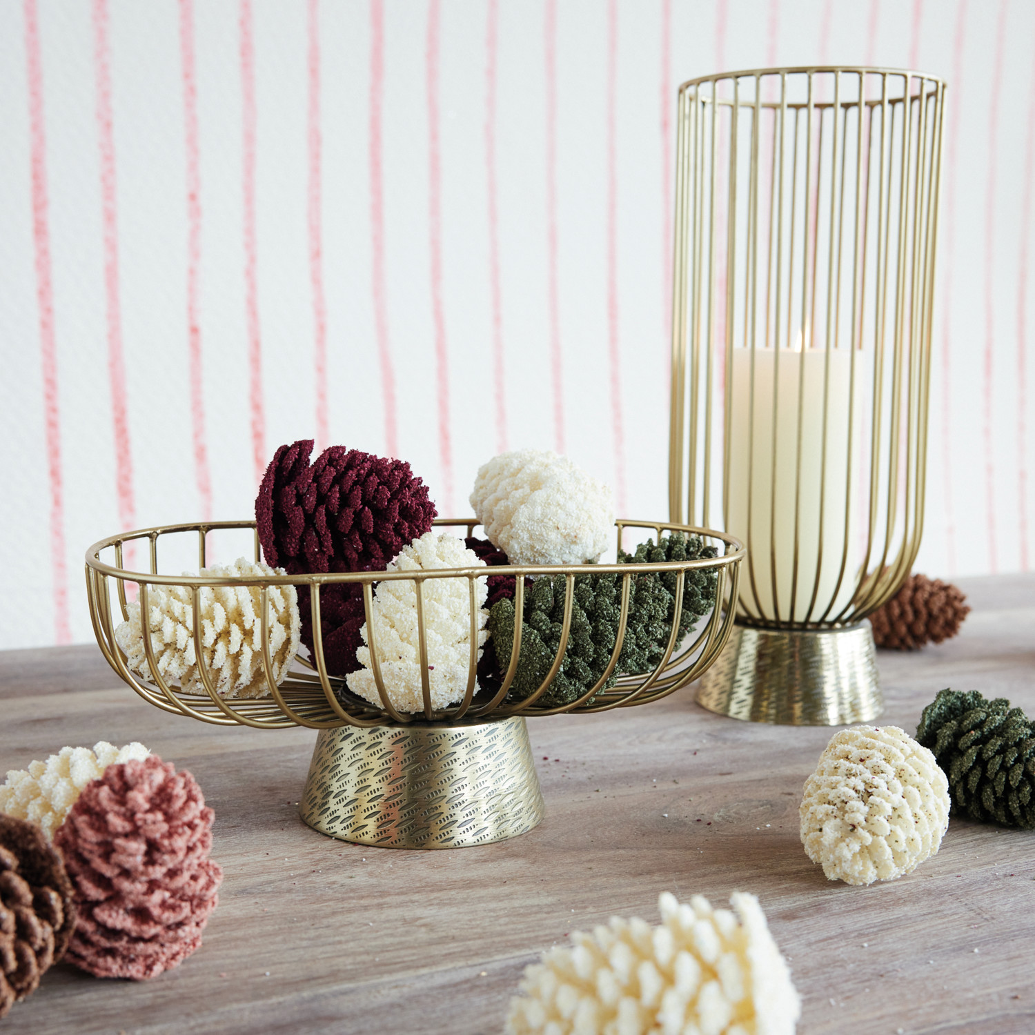 Embossed Metal Wire Footed Candle Holder, Gold Finish