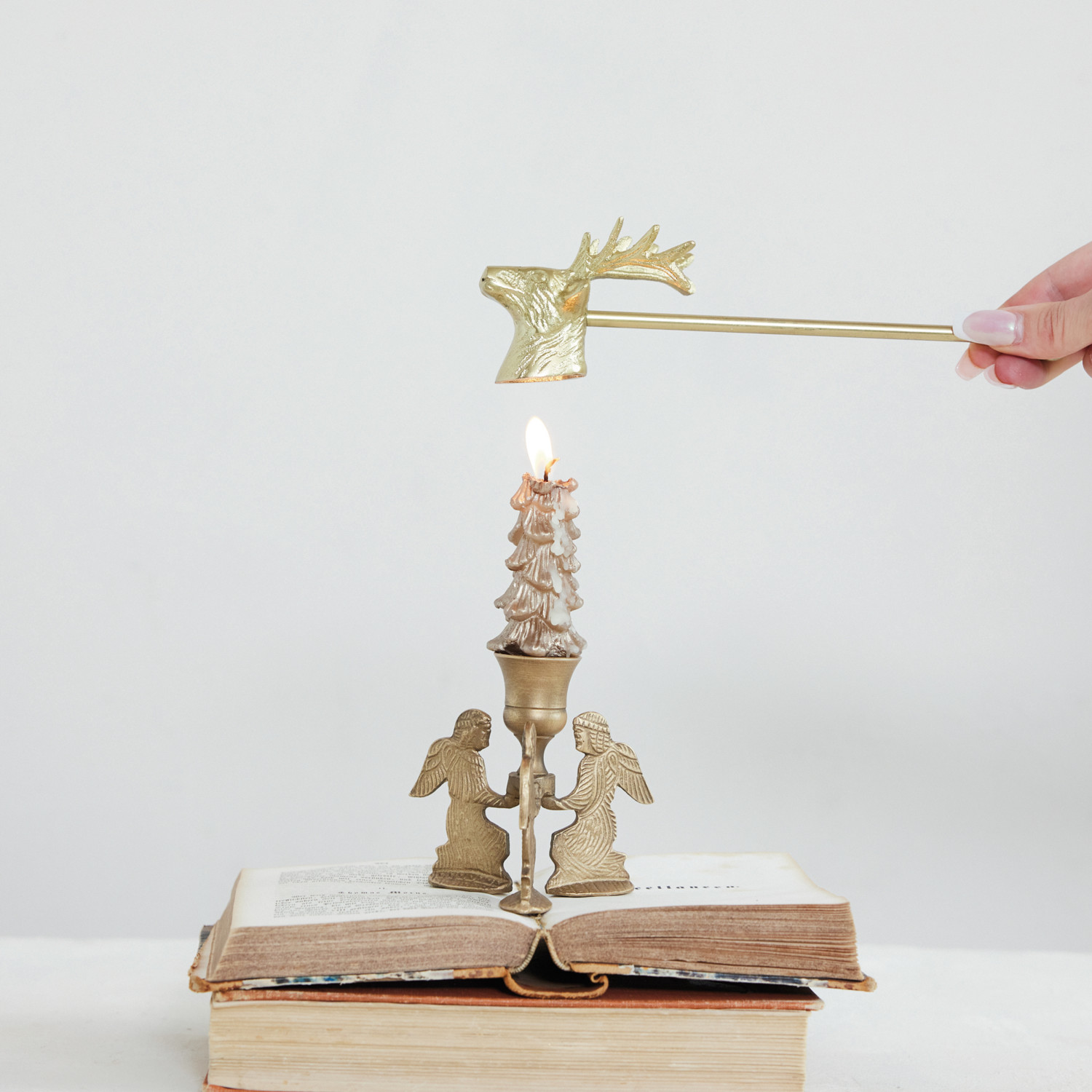 Cast Aluminum Deer Head Shaped Candle Snuffer, Gold Finish