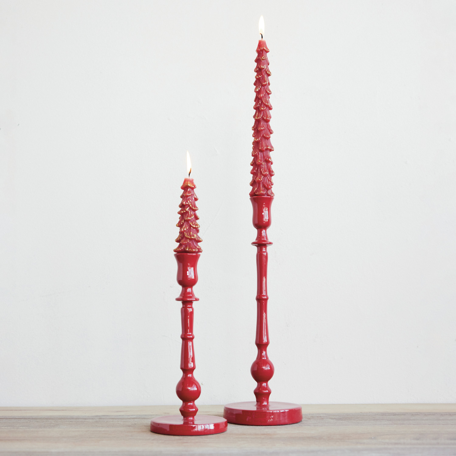 Enameled Cast Aluminum Taper Holders, Red, Set of 2